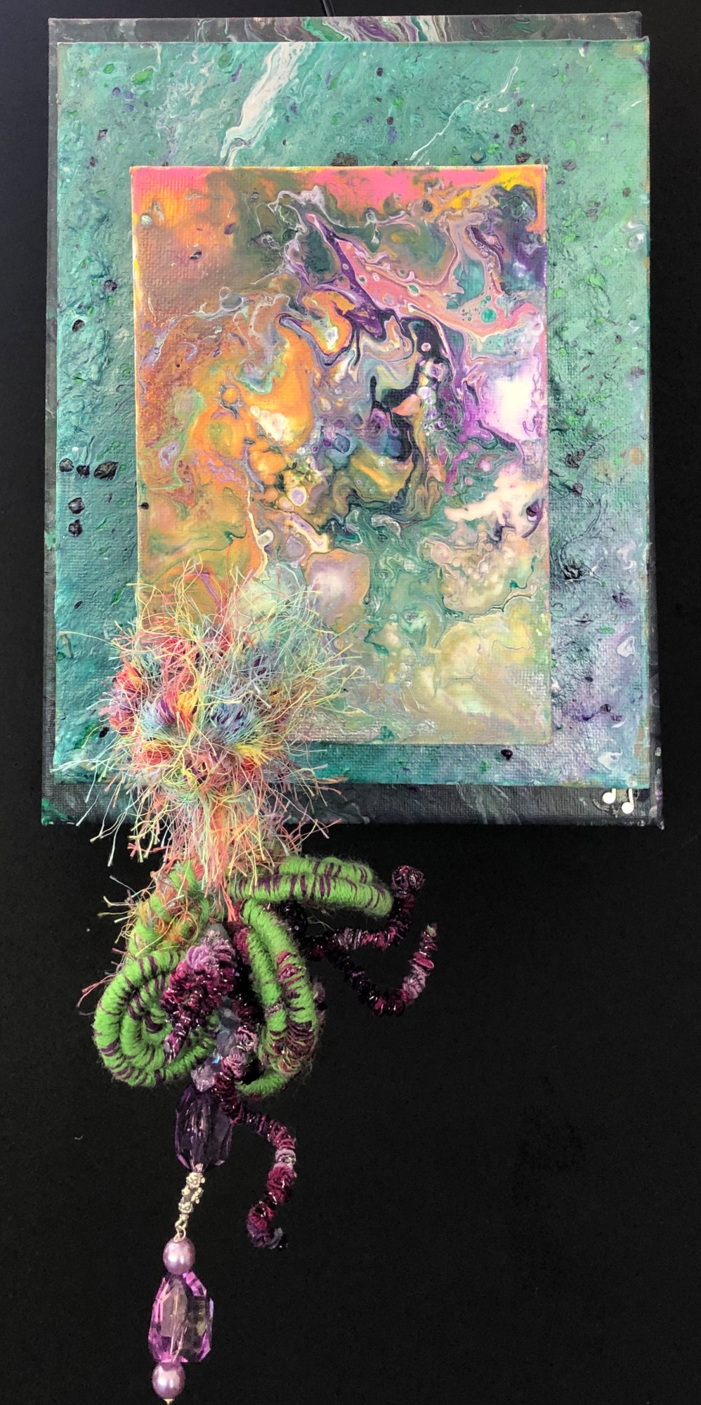 This piece was created during the first lockdown. I think I had a much easier time of it than most folk because I have an oasis in my backyard. I can escape there and tune out all the noise of the political, racial, and pandemic drama. Being in that environment surrounded by the sights and sounds of nature I was moved to explore how the combinations of what I saw and heard would look layered in one piece. I wanted to capture not only the multicolored plant life but the movement of the birds, the shimmering water and the shadows dancing as the wind moved everything. This is one of the ways spring looked like to me.