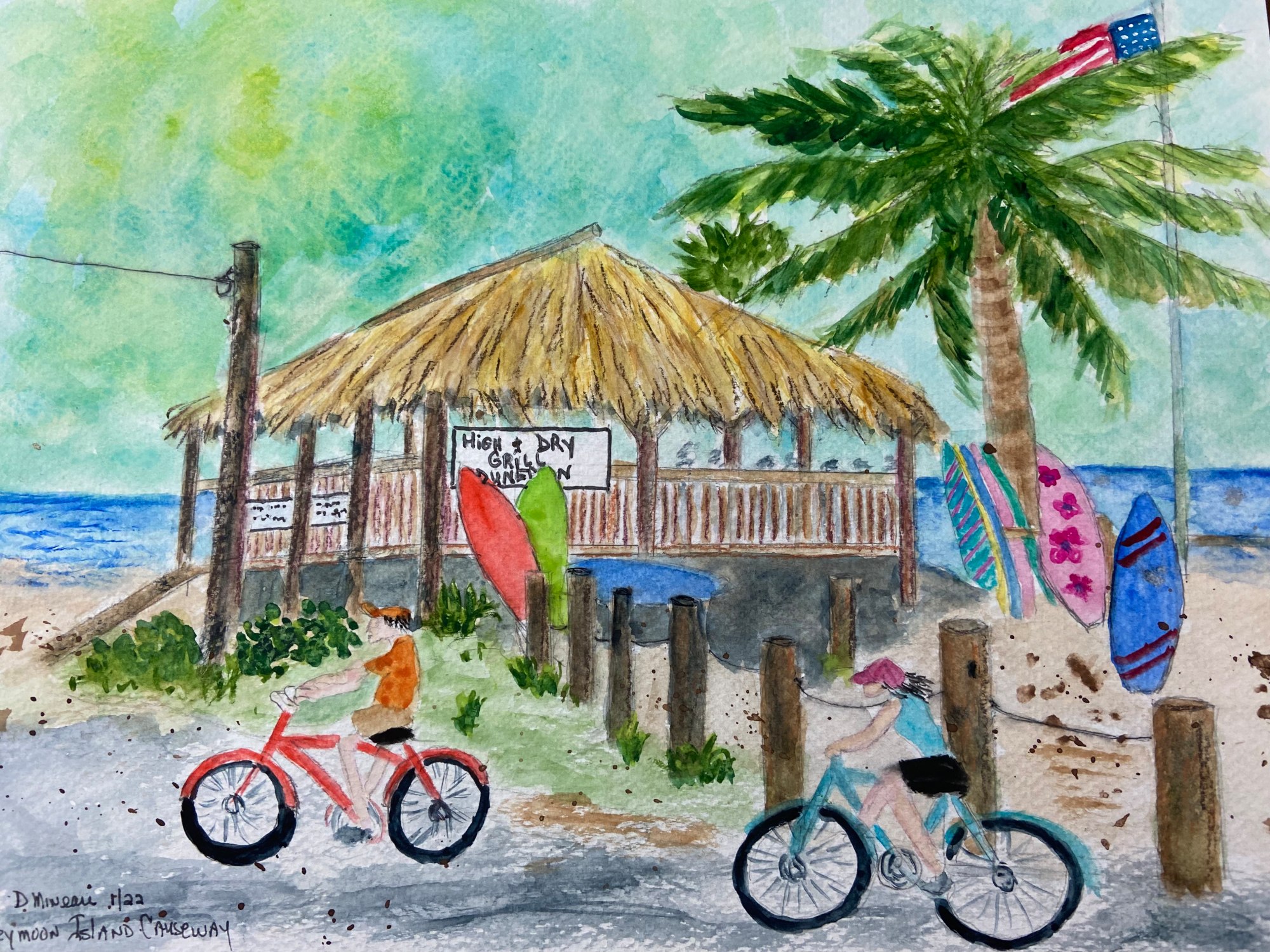 Fun local scene mounted on 1-1/2 inch deep wood panel ready to hang.