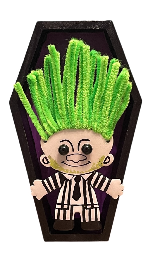 Beetlejuice Trolljuice Coffin by Erin Fox by Derek Gores Gallery  Image: Erin Fox is a mixed-media artist who wishes she never got mixed up in the messy world of resin art, but here she is.