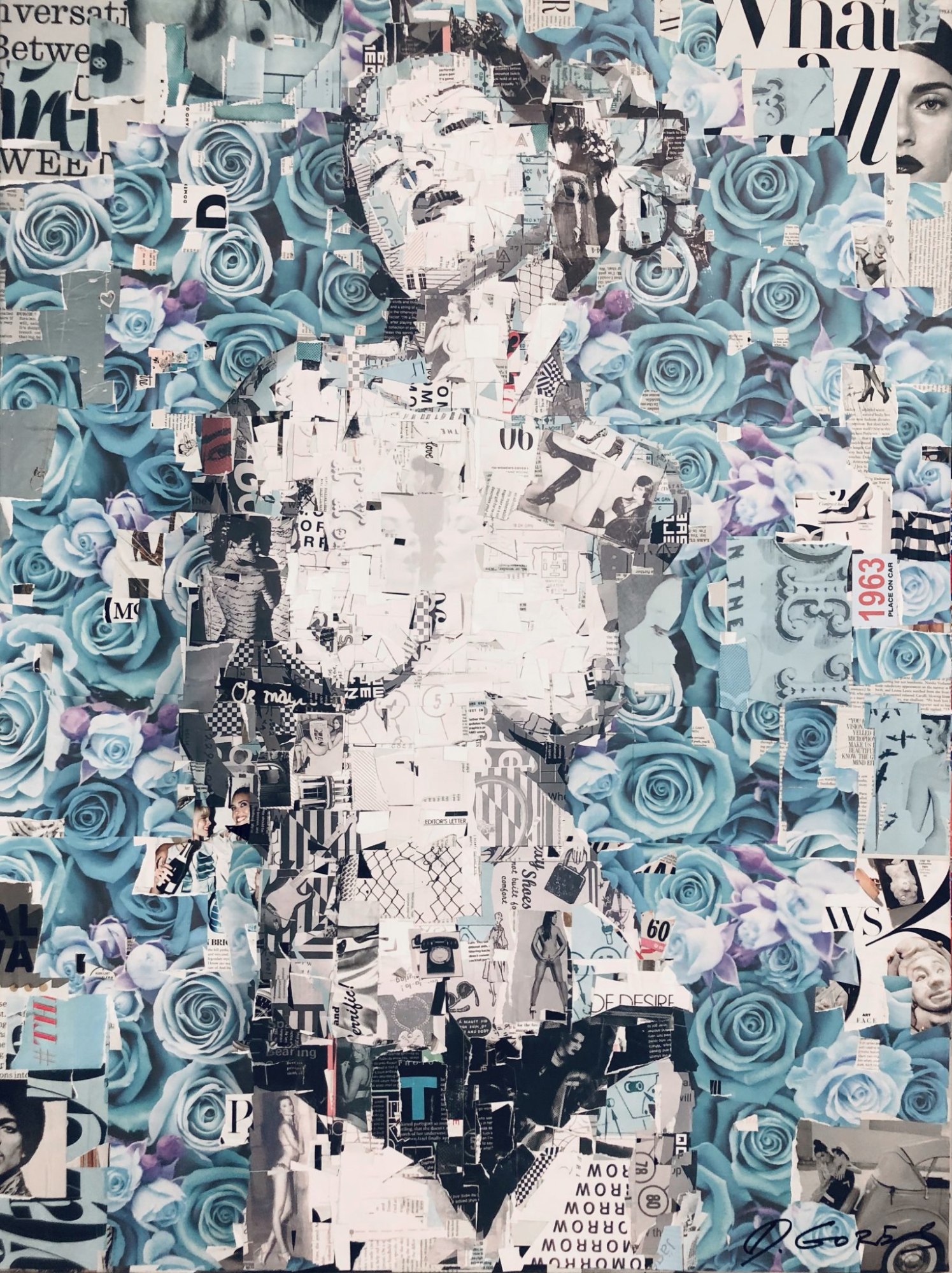 Derek Gores recycles magazines, maps, data and more in his lush portraits on canvas. The balance of detail and playfulness reveals Gores’ knack for discovery.