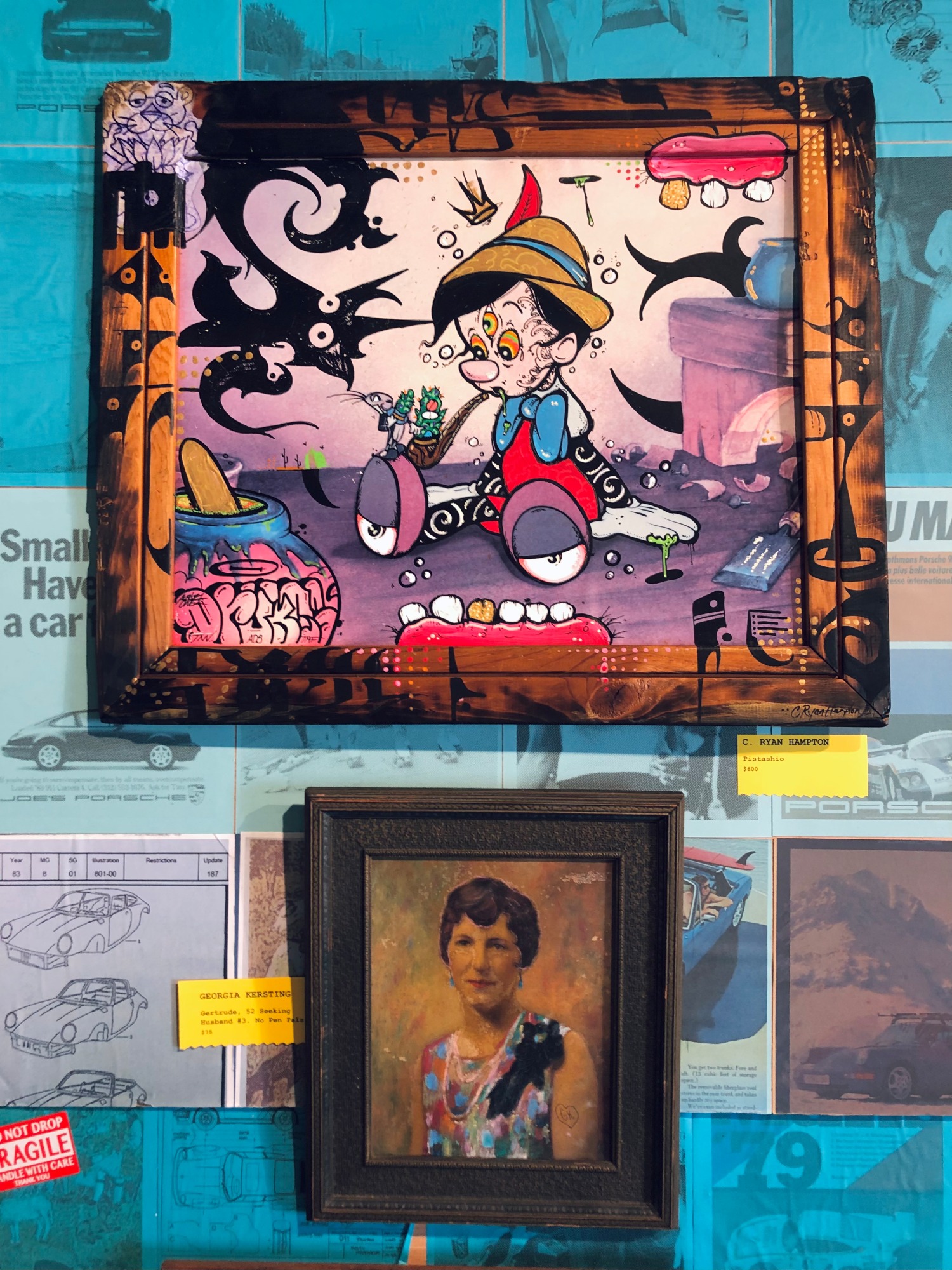 Derek Gores recycles magazines, maps, data and more in his lush portraits on canvas. The balance of detail and playfulness reveals Gores’ knack for discovery.