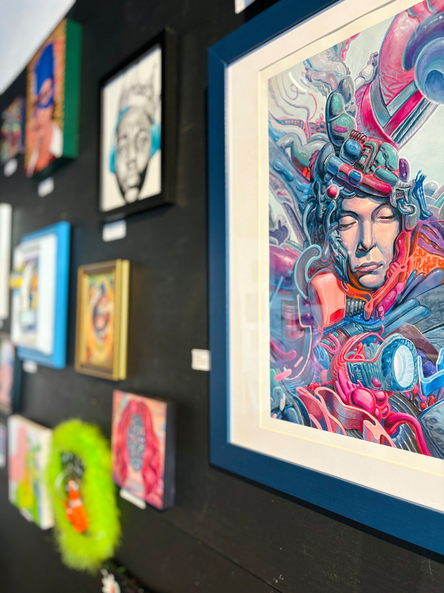 Lucid Dream Machine of the Sleeper by Nicholas Roberts by Derek Gores Gallery  Image: Nicholas Roberts is an artist and painter of weird cosmic beings formed from celestial blobs and unfamiliar shapes. Nicholas has racked up 13+ years in the creative industry, working as an illustrator, graphic designer, and art director. His work is heavily influenced by classic science fiction, surrealism, and metaphysics.
