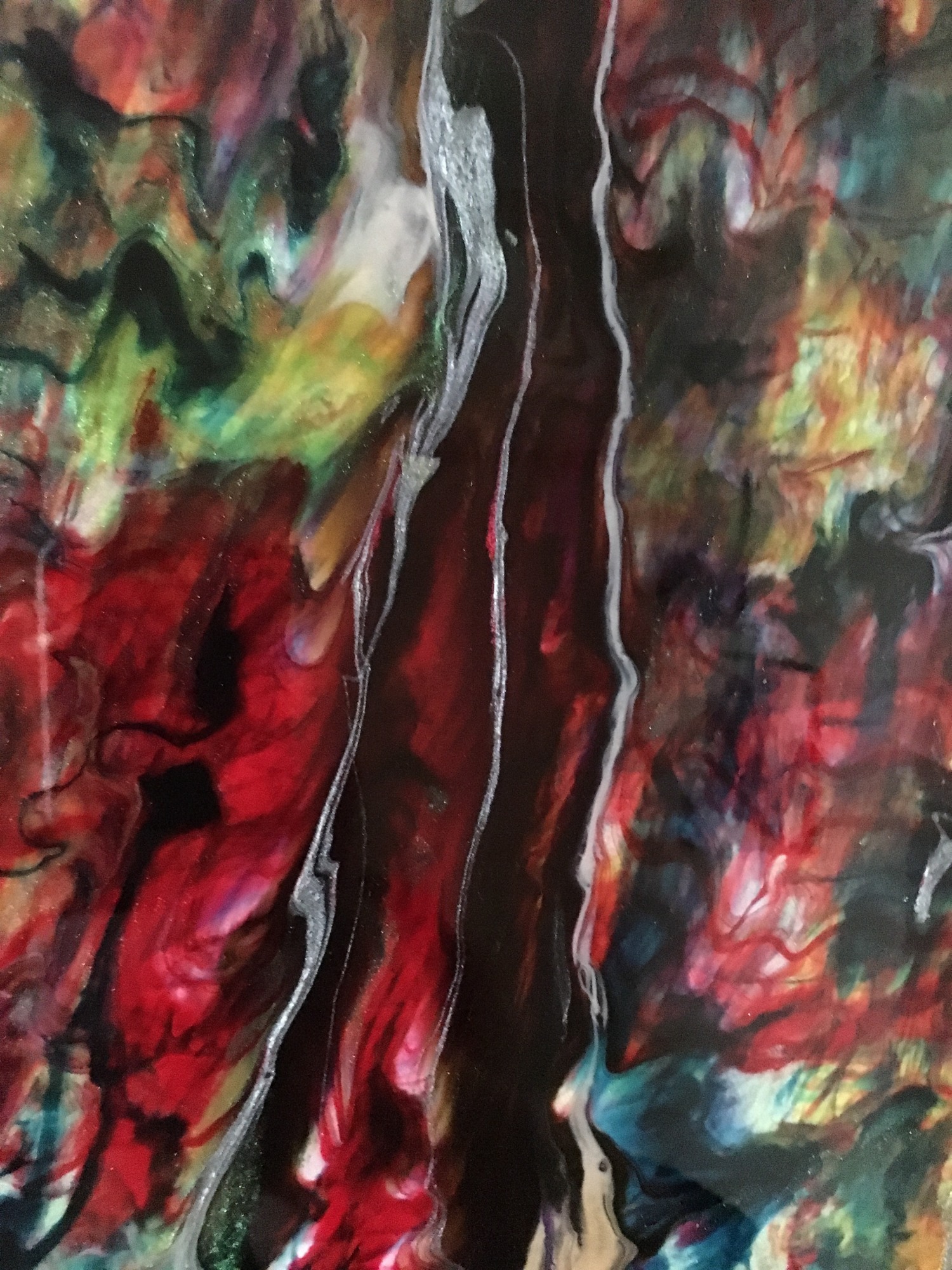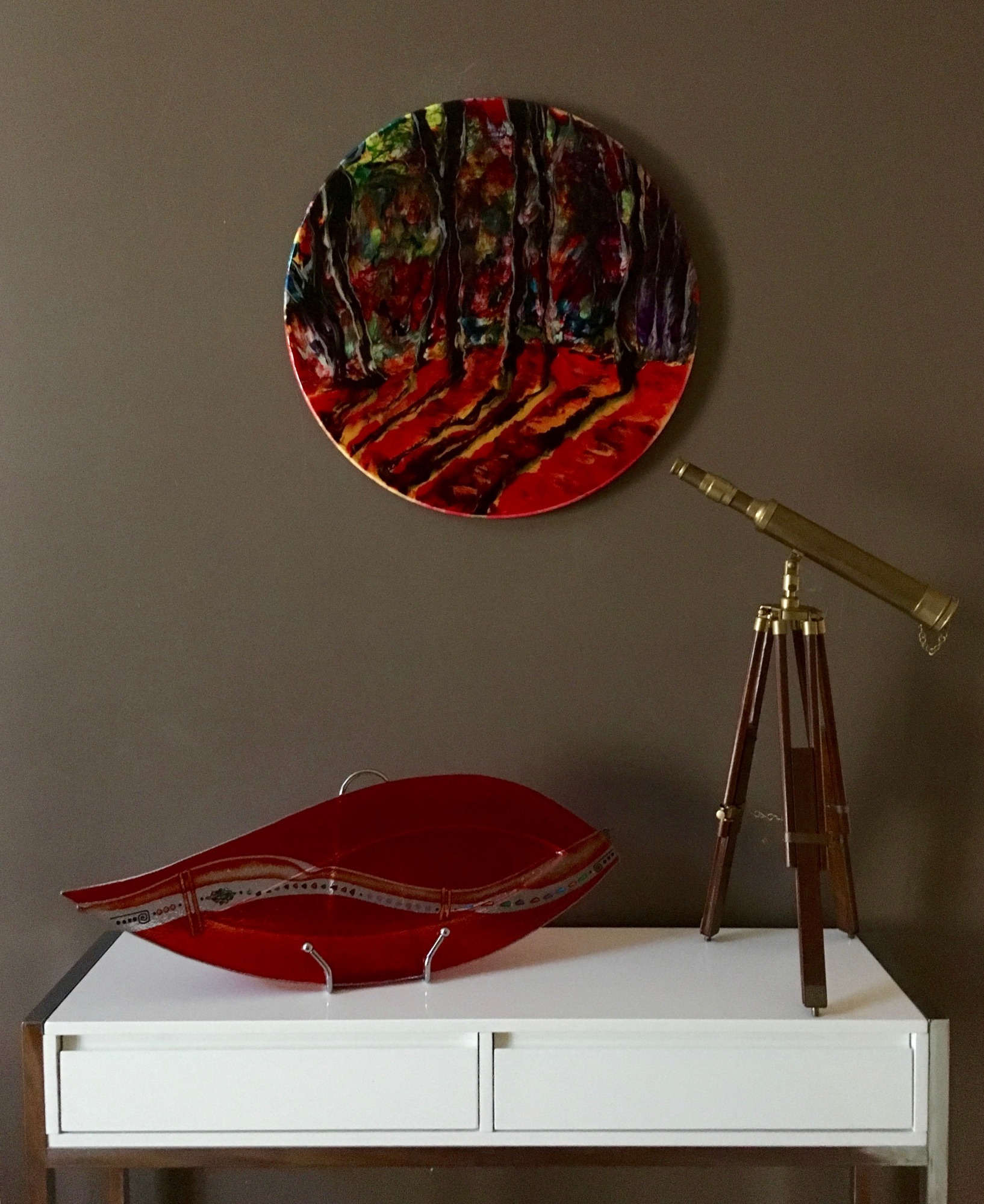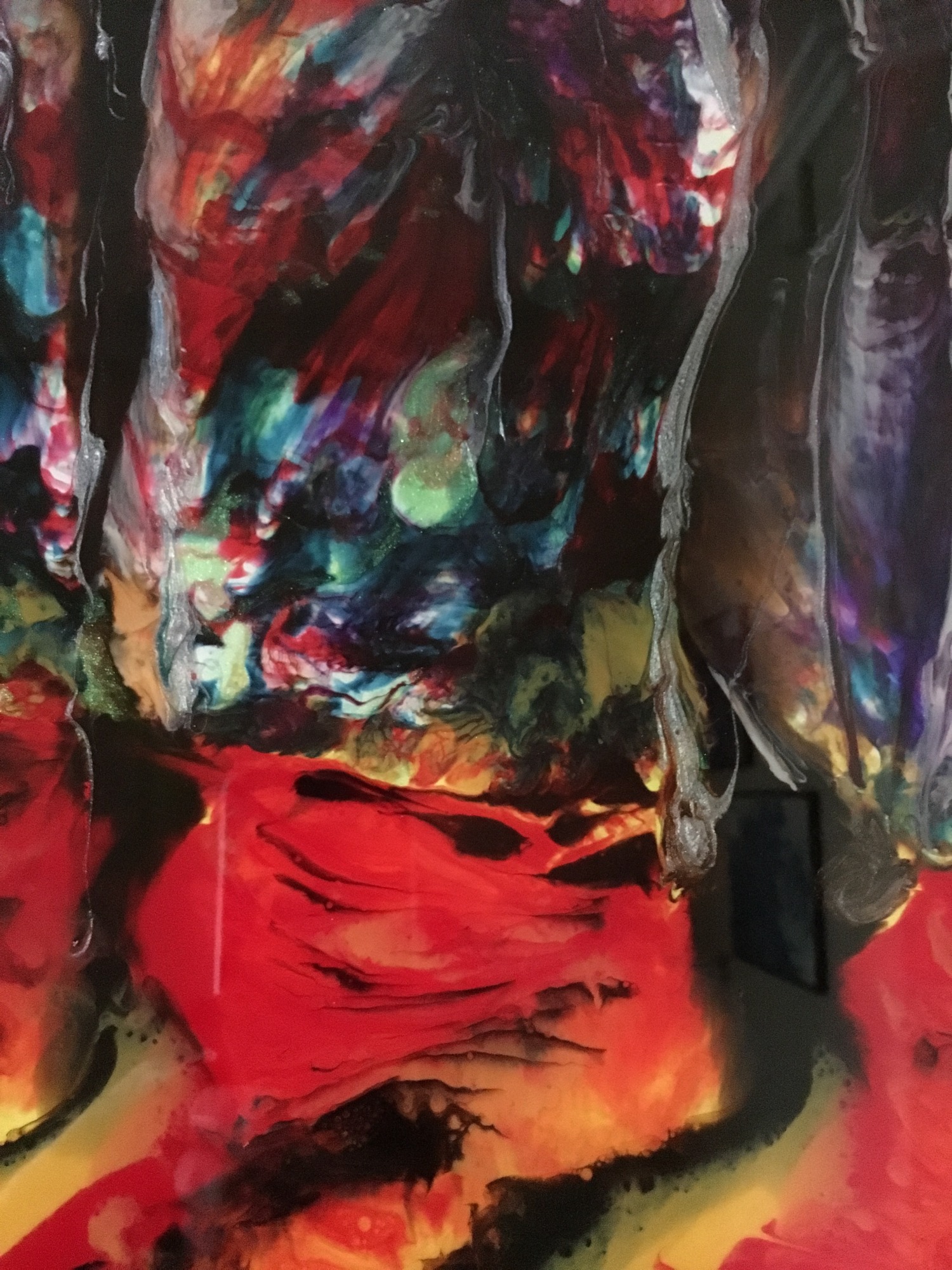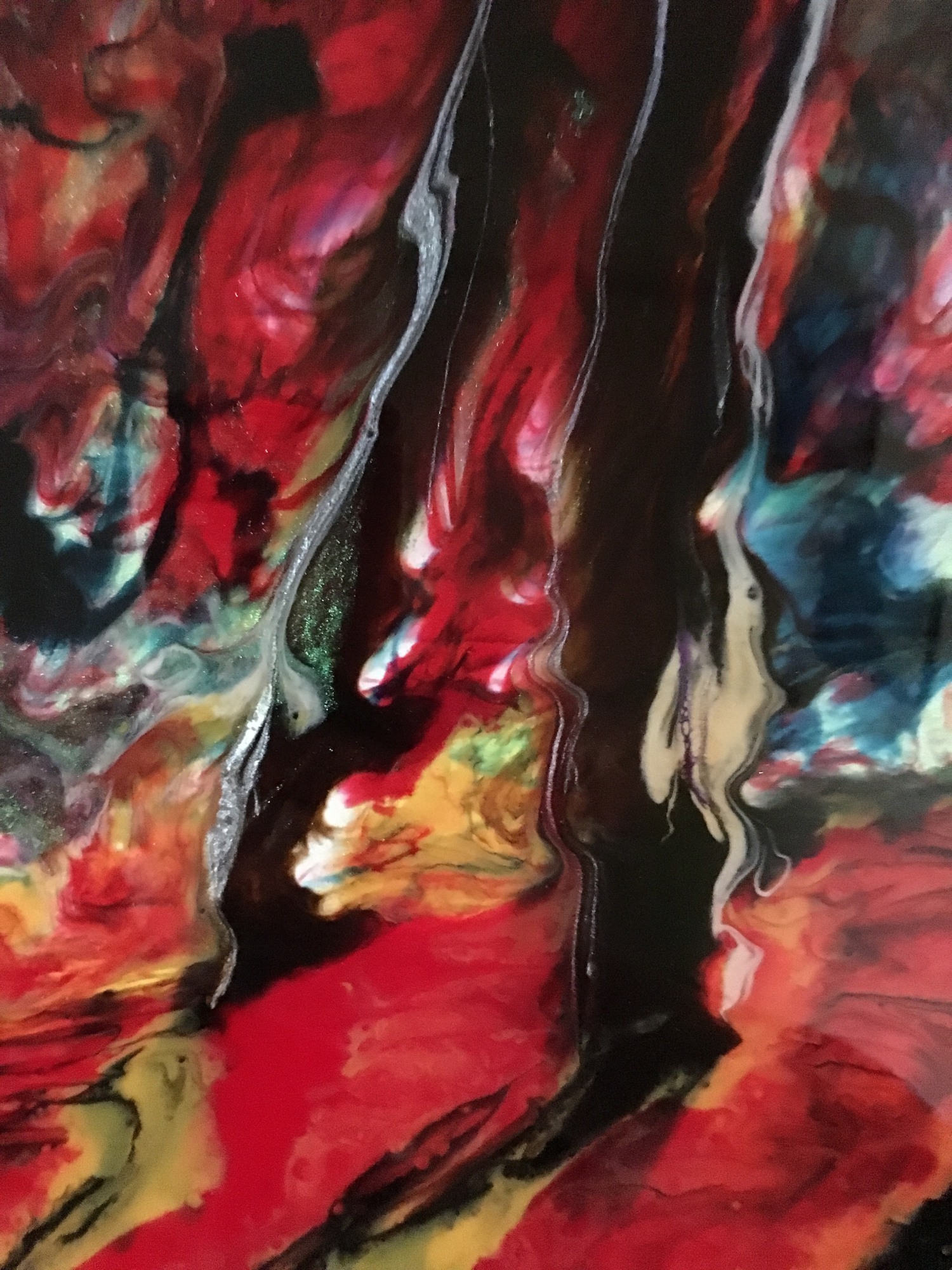 Expressive Resin Abstract Landscape in rich reds depicting the Australian Bush