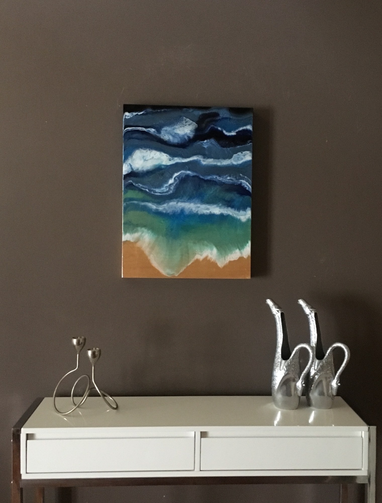Expressive Resin painting in rich blues, capturing the essence of the Western Australian Coastline