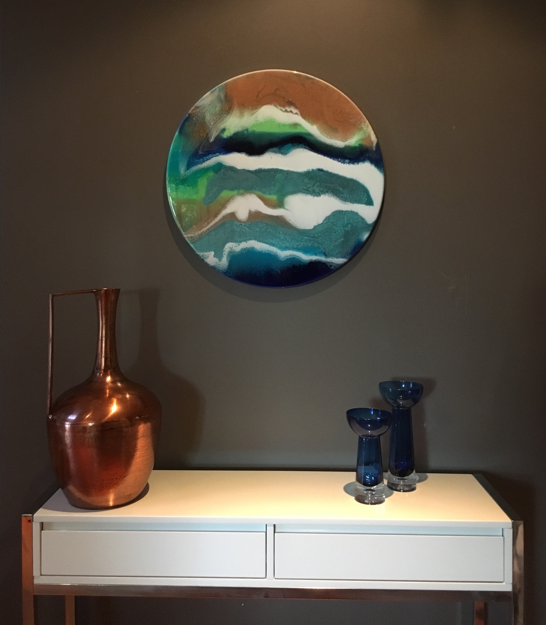 Undercurrent is a semi-abstract artwork created using resin and pigment. Resin is a wonderful medium for creating movement and depth.