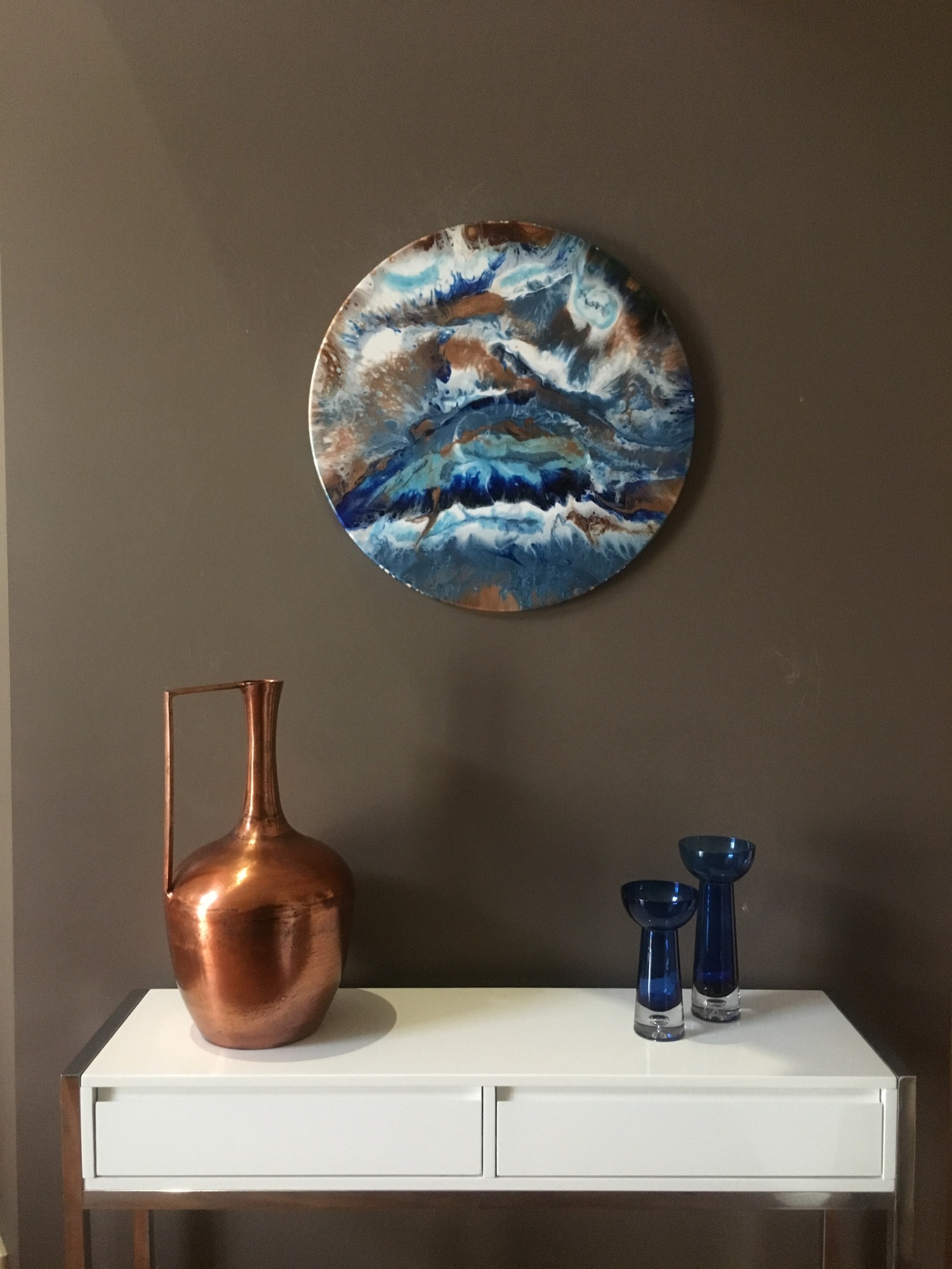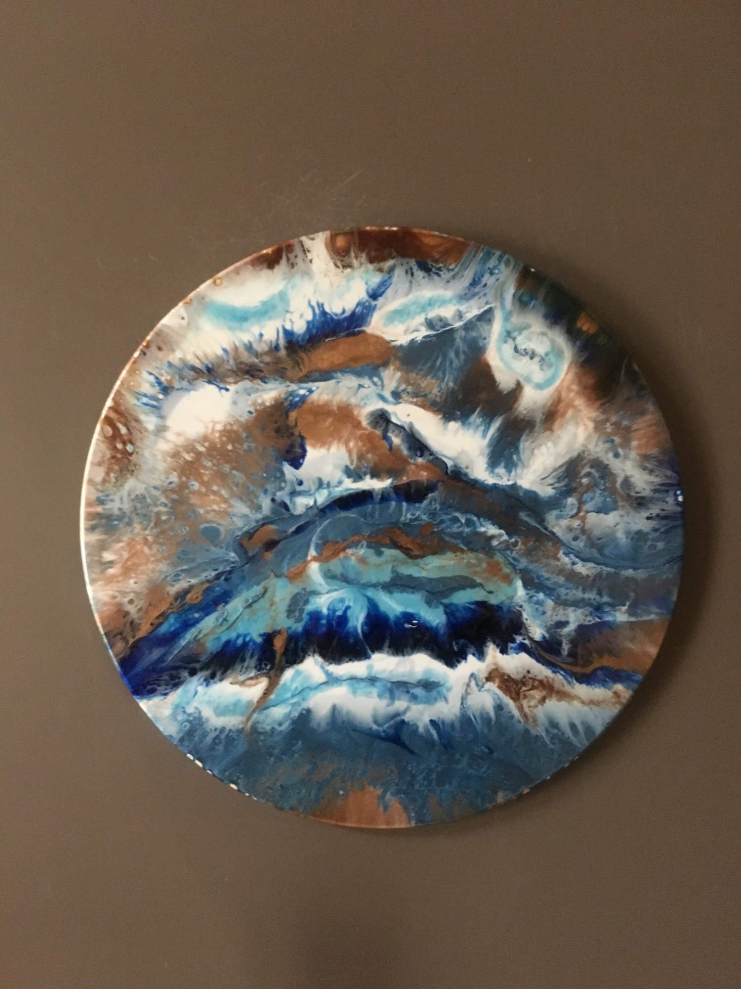Abstract Expressive resin painting in blue & copper