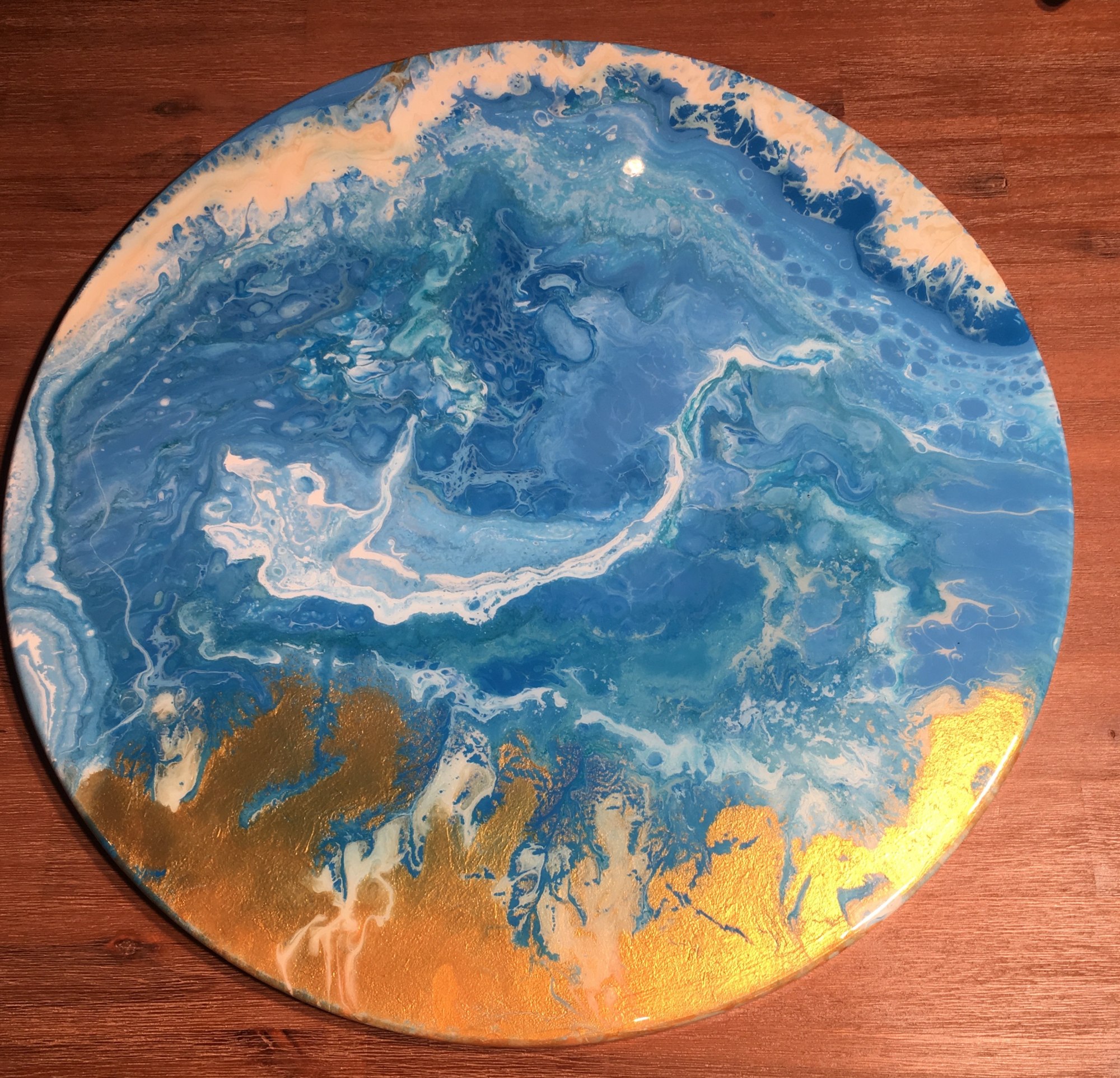 Undercurrent 1 is inspired by the waterways in the North West of WA. It is an semi-abstract resin painting capturing the ocean shore.