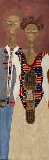 Mixed Media Acrylic and Periodicals on Canvas /Hand made Fabrics