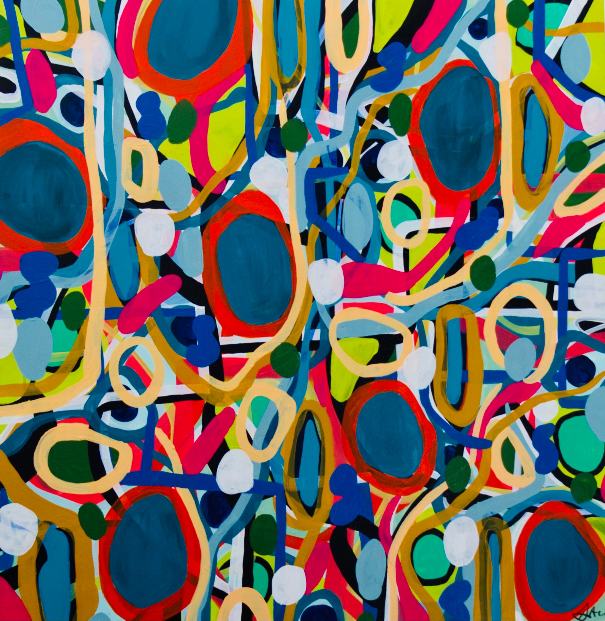 It's Complicated is a representation of Life and Relationships and the interconnecting pieces that can sometimes make things more complicated layer by layer. This artwork would look great in any modern interior and will pop with colour on any wall.