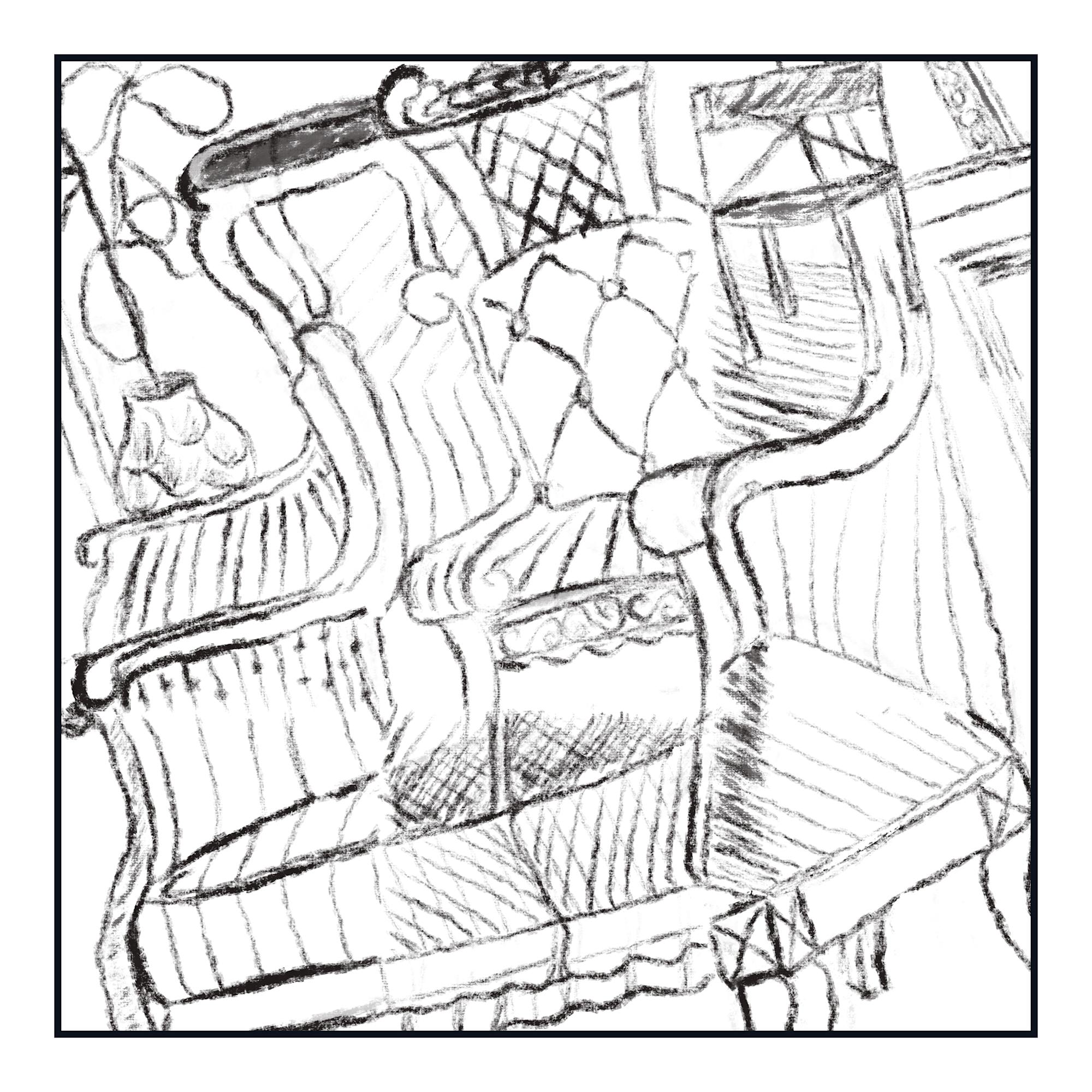 The true ingenuity of "10 Chairs" is revealed when viewed as a single, unified piece. The nine disparate chair fragments, each a complete work on its own, are arranged to collectively form the image of a single, large wingback chair. This clever optical illusion, which gives the artwork its title, transforms the individual pieces into a cohesive narrative, representing how small, distinct elements can come together to create a singular, powerful form.