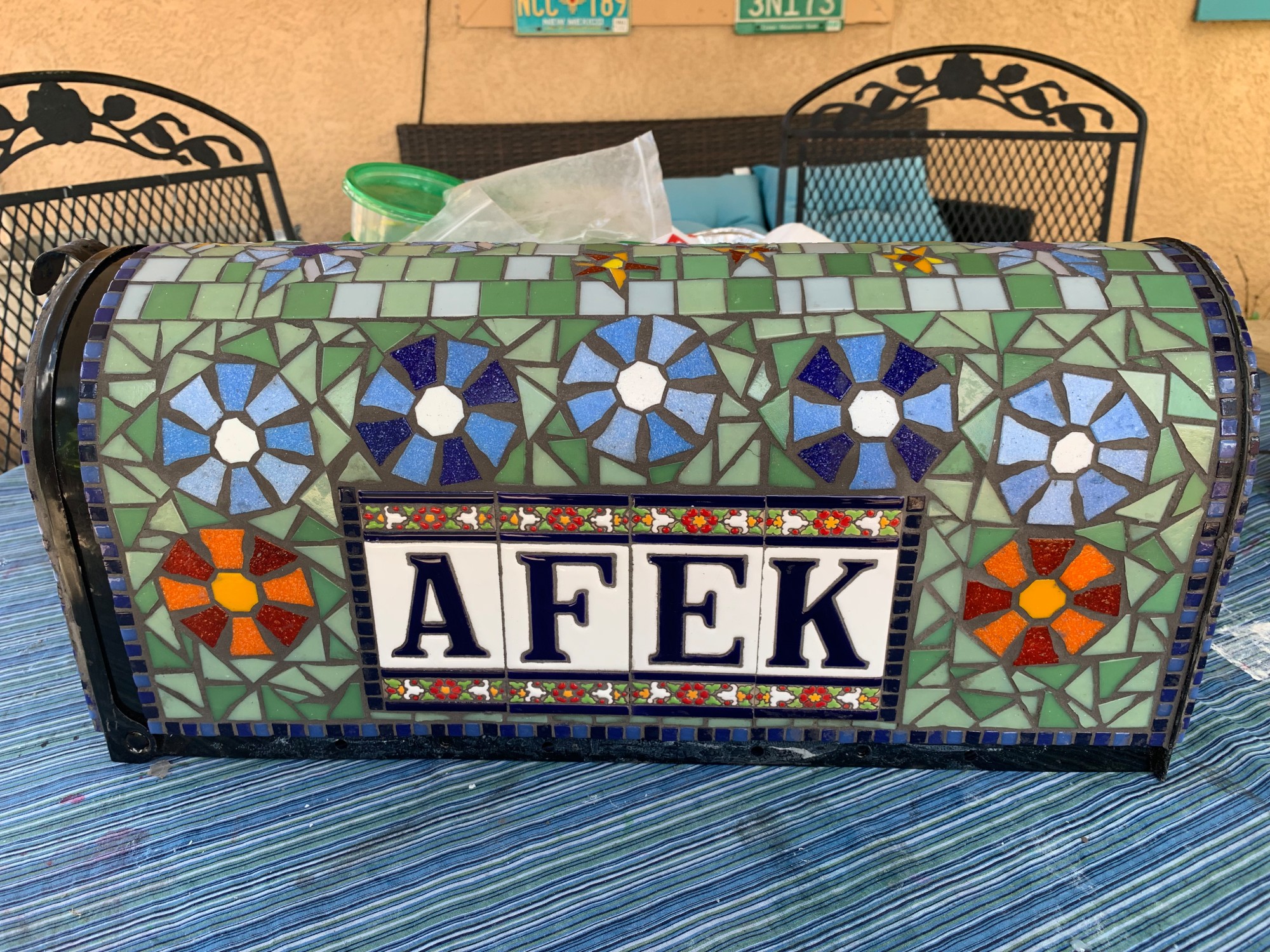 I create mosaics using used aluminum coffee pods. Contact me for custom made special orders.