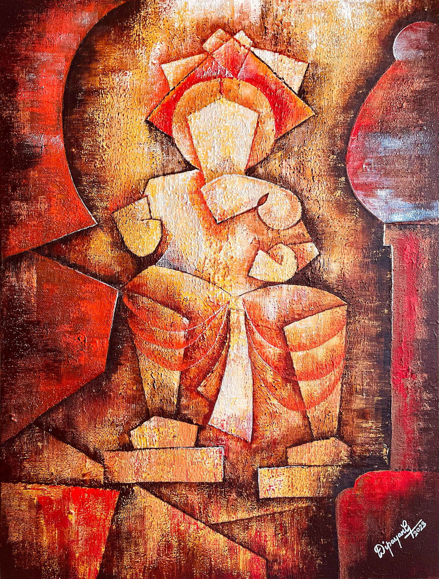 “Gunatray”, as a series, bases on Yogic Philosophy. It depicts the three “gunas”, viz. Sattva (purity, harmony), Rajas (activity, opulence, rule), and Tamas (negativity, darkness, destruction). “Rajas”, with shades of monarchial grandeur, wealth and opulence, depicts prosperity and symbolizes Lord Ganpati Bappa (in his Lalbaug cha Raja posture).