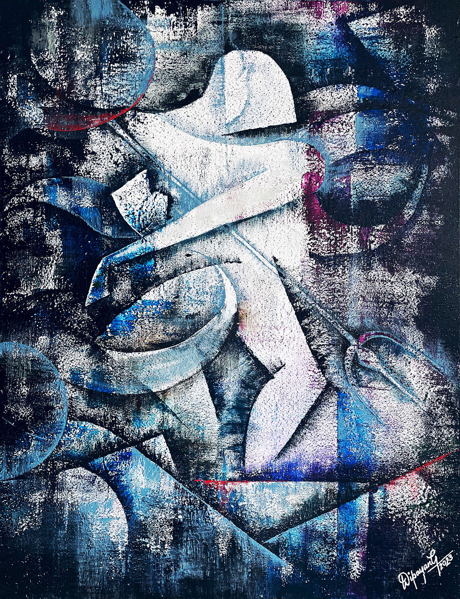 “Gunatray”, as a series, bases on Yogic Philosophy. It depicts the three “gunas”, viz. Sattva (purity, harmony), Rajas (activity, opulence, rule), and Tamas (negativity, darkness, destruction). “Tamas”, with shades of darkness, depression and negativity, depicts destruction and symbolizes Lord Shiva in his tandav avatar.