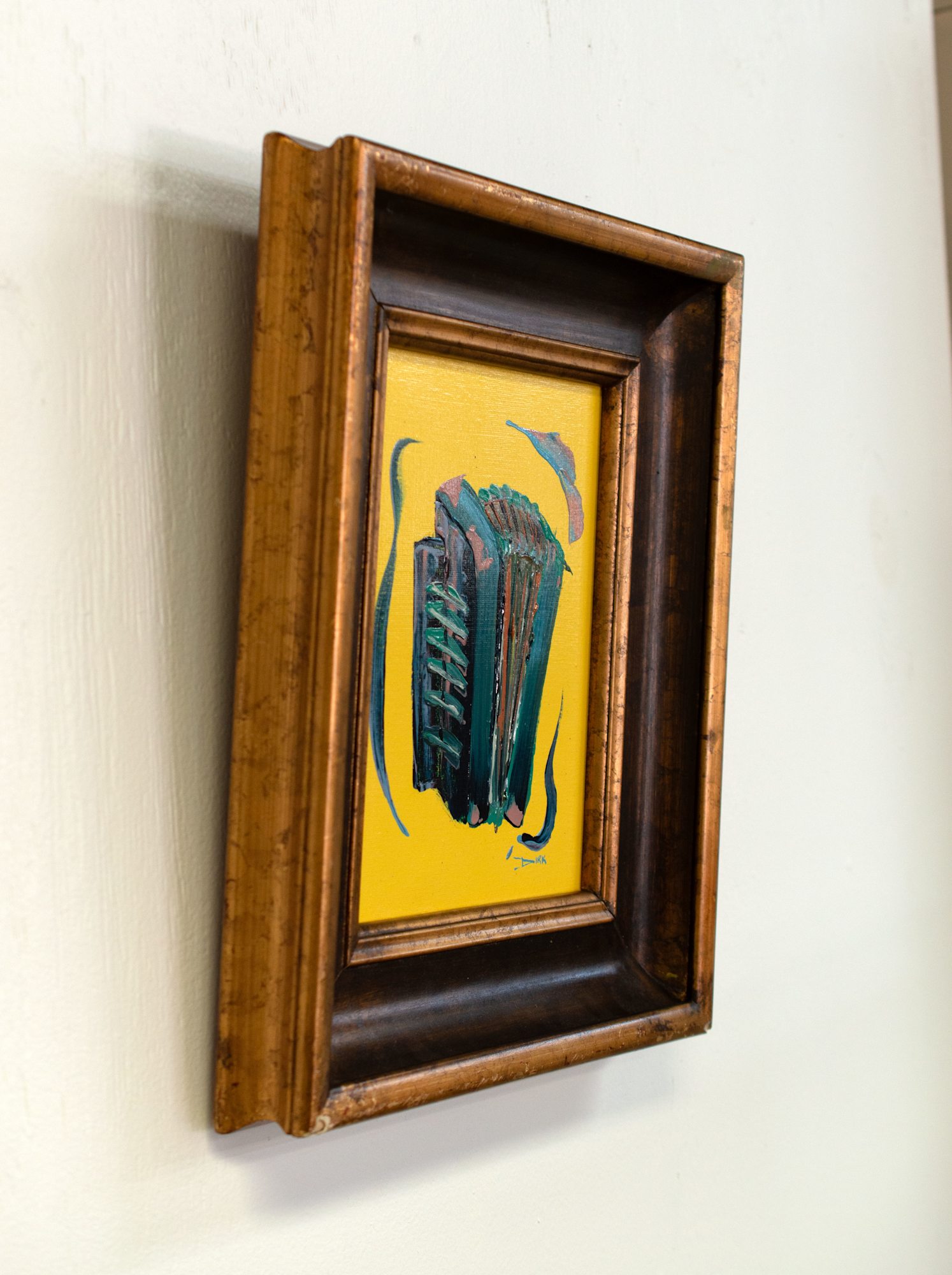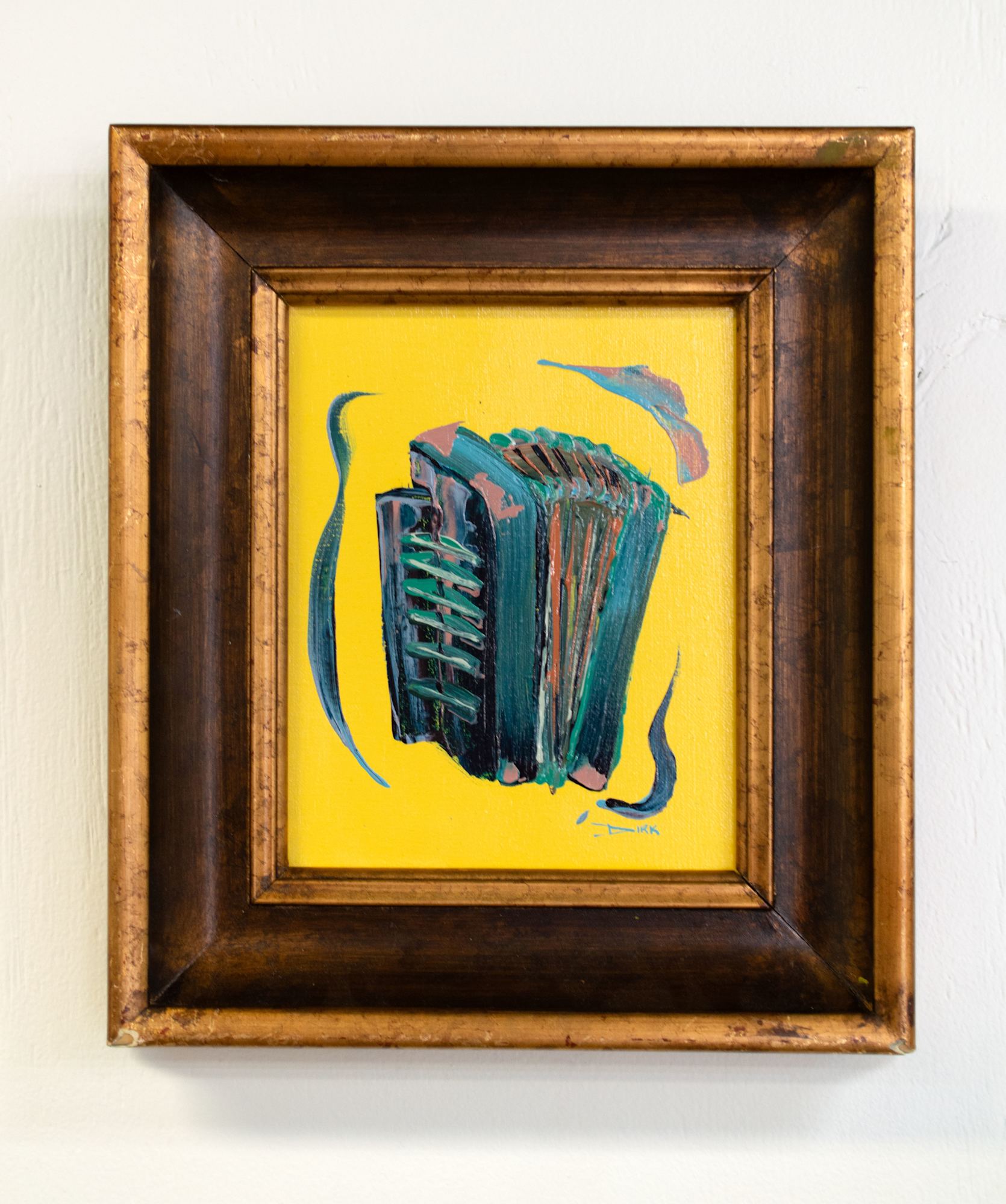 This painting is part of the Festival International Instrument Series which combines the flowing brushwork from my original abstracts to the instruments seen throughout the stages of Festival. The integration of the brushwork, as well as the vibrant color palette, creates an energy that is specific to this music festival.
