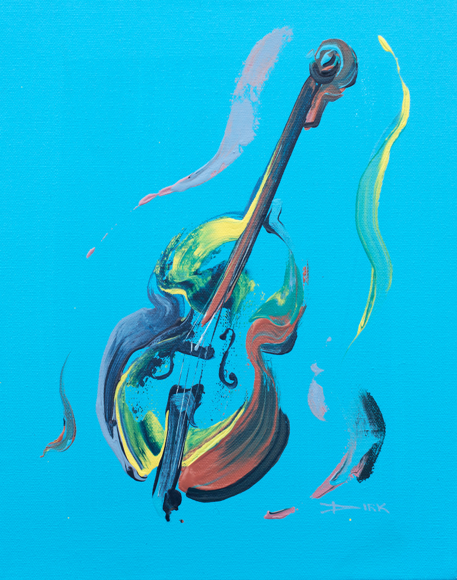 This painting is part of the Festival International Instrument Series which combines the flowing brushwork from my original abstracts to the instruments seen throughout the stages of Festival. The integration of the brushwork, as well as the vibrant color palette, creates an energy that is specific to this music festival.
