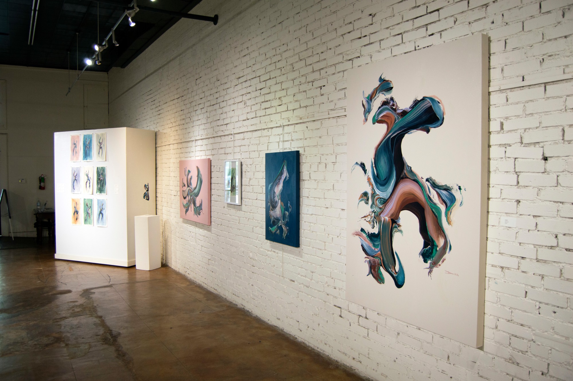 This circular energy, this flow between myself and the medium creates delicate figures that dance, and attempt to convert energy into physical form. Within the act of applying paint to canvas and styrofoam there is a constant flow that reaches to establish levels of connectivity within myself, my art, and the viewer. This dialogue between art, artist and audience creates a narrative, that flow is continuous.