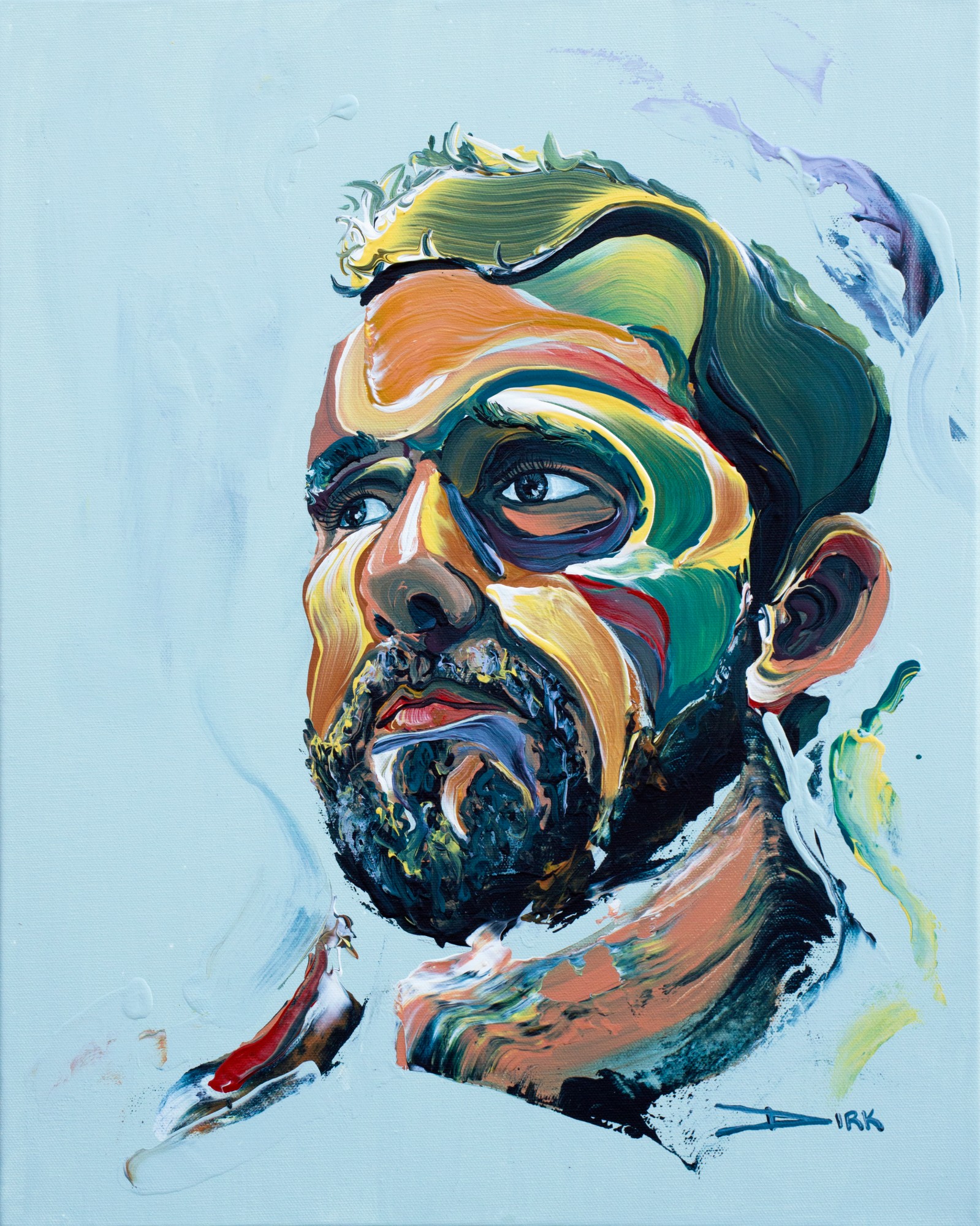 I have always enjoyed creating work from the human figure. It has been a challenge to incorporate the figure into my expressionistic paintings due to my application style. The confines of doing actual subject matter limits the freedom of painting expressively. This self-portrait was an attempt to bridge the two worlds together, maintaining my painterly style but still capturing my look.