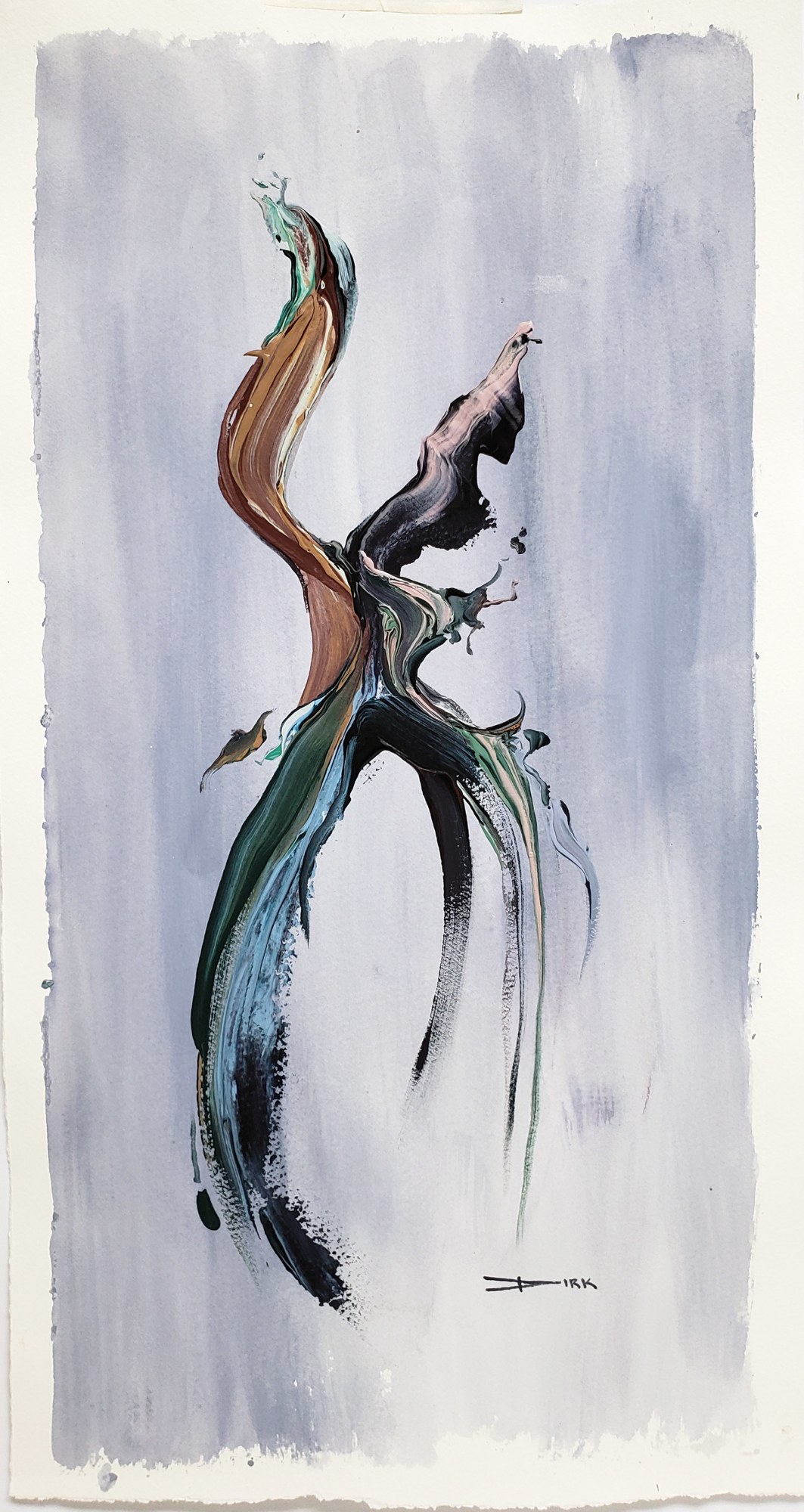 Isolated series is a continuous series, mainly smaller works, that contain an organic figure free-floating in it's own space. These figures represent a captured emotion that is expressed through color and movement. The focus of this series is on the correlation between the isolation within nature and an individual emotion.