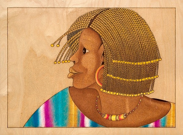 16 x 22”, Original Woodburning with color pencil on Birch Panel