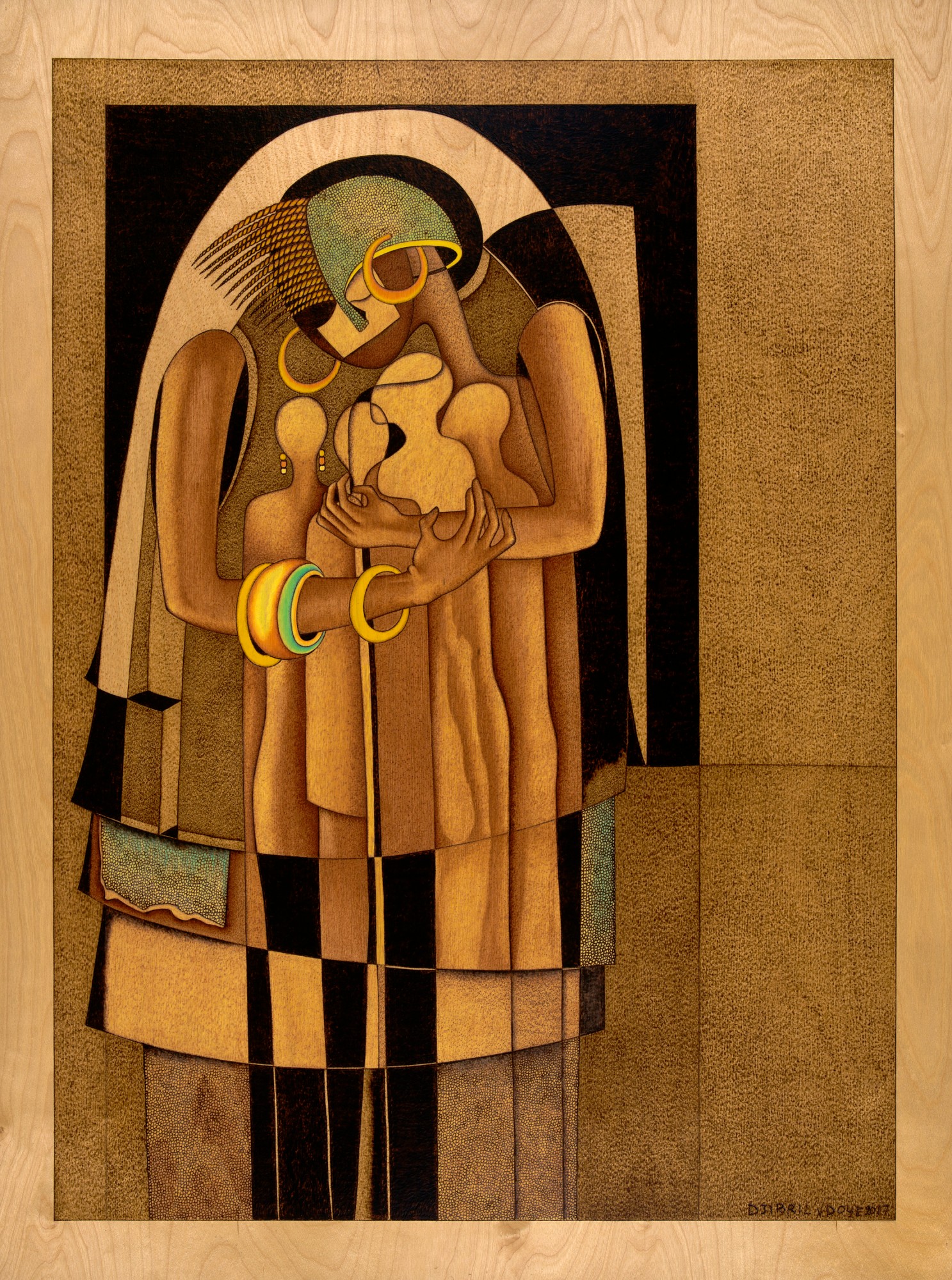 36 x 26” Original Woodburning with color pencil on Birch Panel