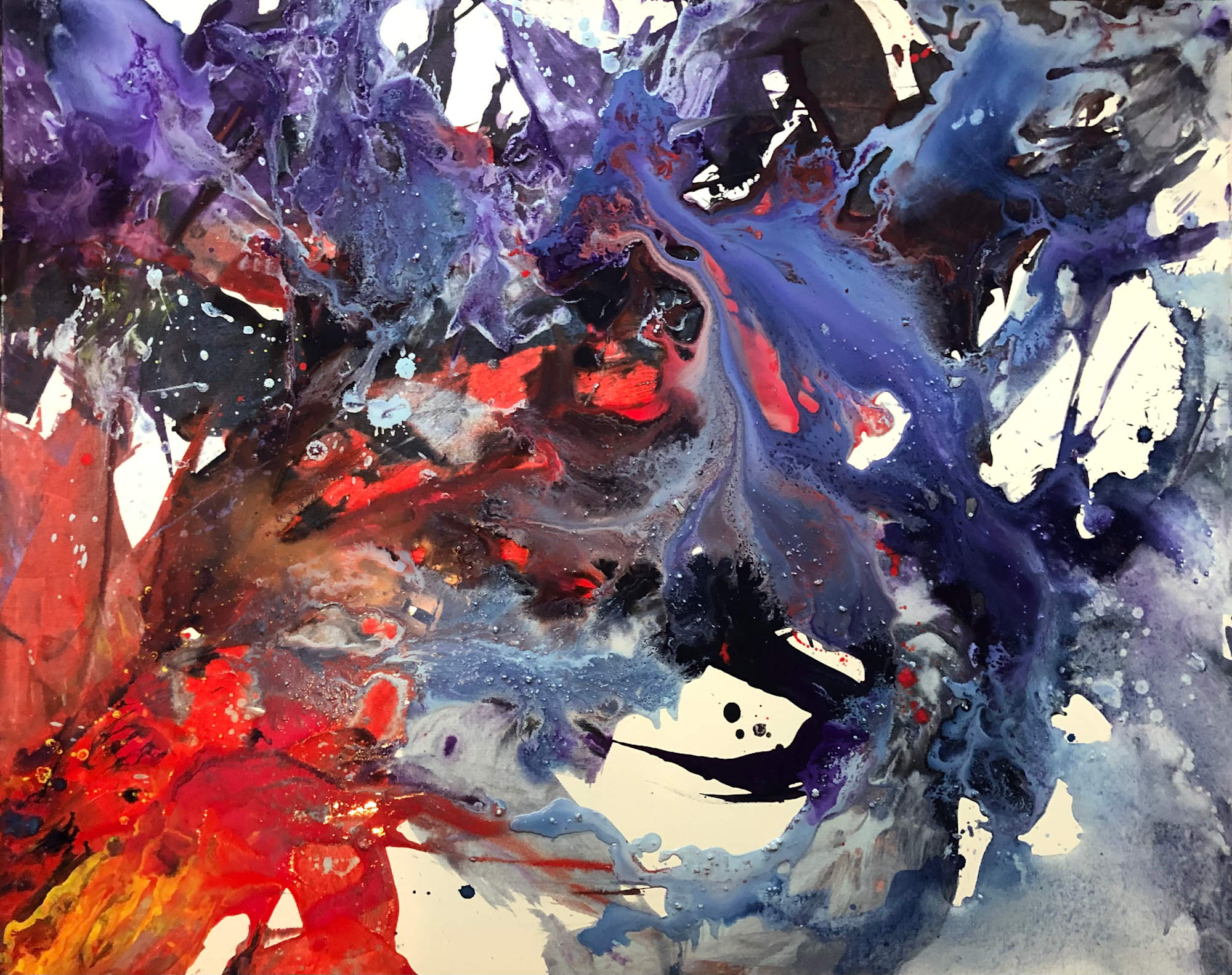This painting is like the feelings of the heart. On one part we see the cold, freezing, passive energies and on the other we can see the warmth coming in. It is like two contrasting energies blending, a detailed close-up of our hearts. The contraction and the opening up, the melting of warmth within.