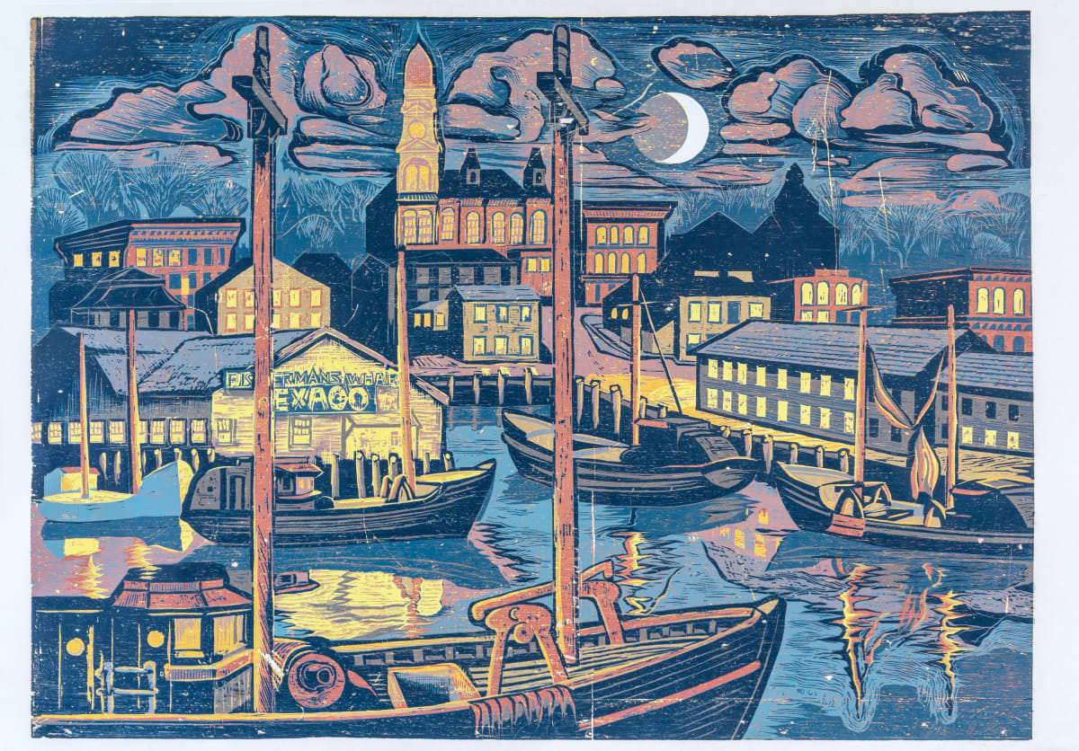 "This woodcut is a reminder of my experiences while living in the vibrant Cove during the 1970s. Despite the fishing industry's decline, one's memory remains undisturbed." DG
