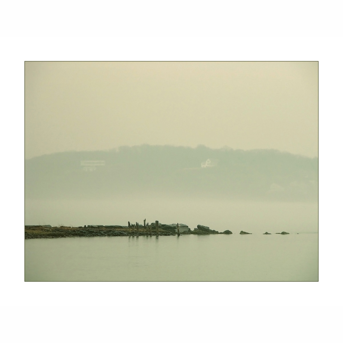 Tranquil fog hangs over the Sage Jetty looking out at Shelter Island on Long Island in NY. You can almost feel the quite and taste the stillness.