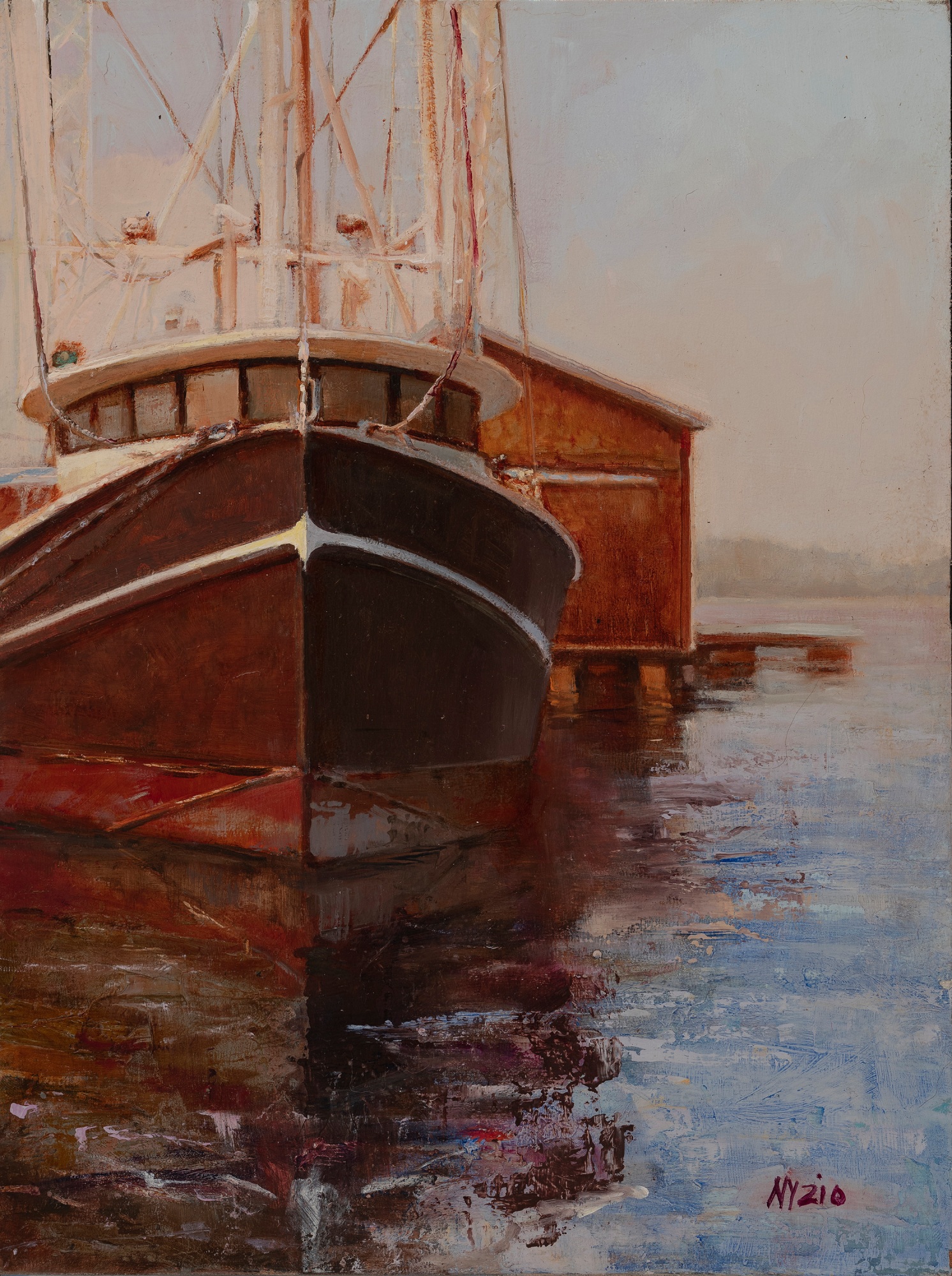 This morning was quiet, a day off I think for many I think. There were plenty of boats, but no workers. This brown boat, which I believe is a faded black, is called Nightwatch. This boat is the one that caught my attention. A big solid shape, neutral colors, and beautiful in the light.