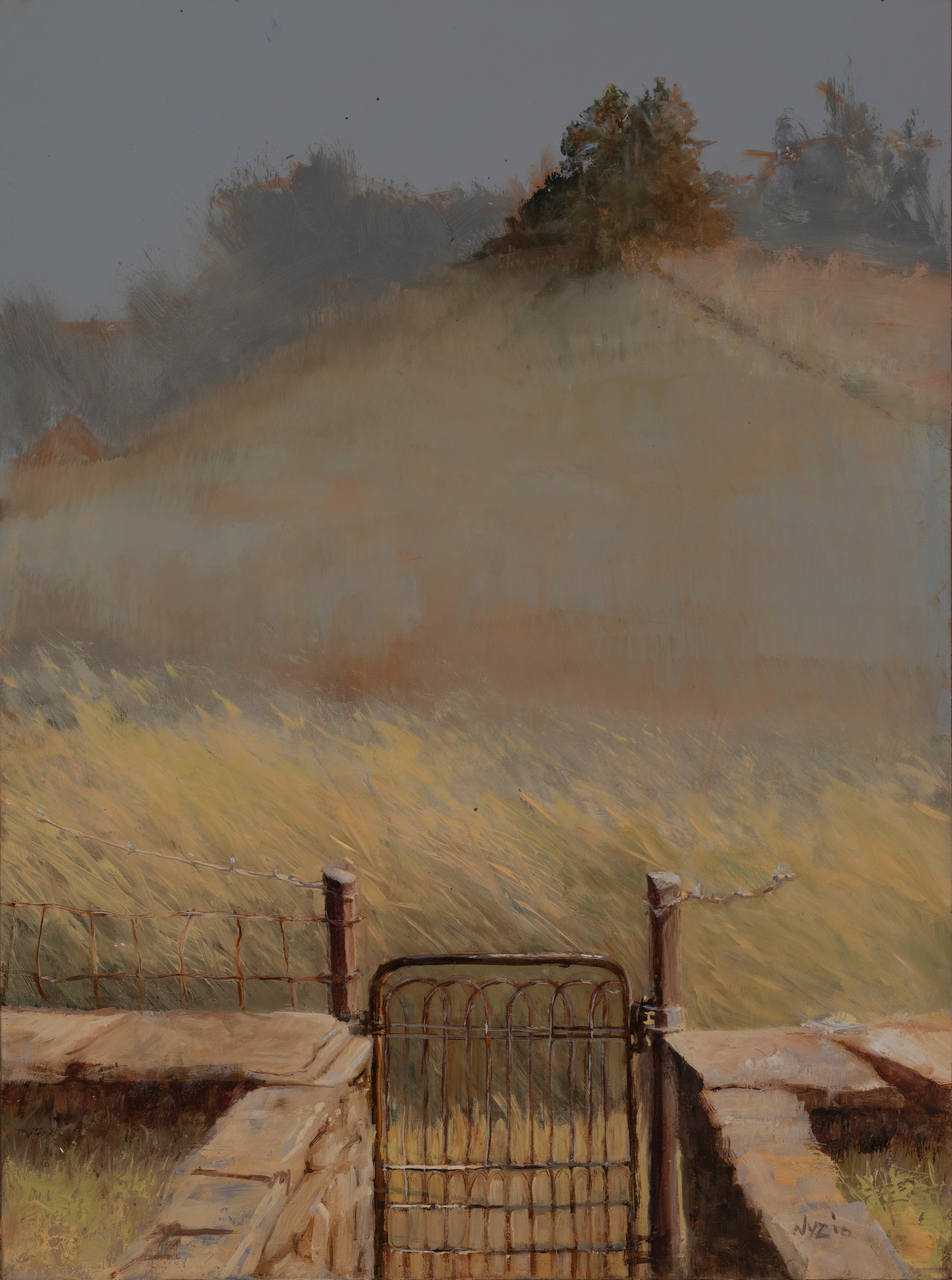 World Past the Gate was painted en plein aire (outside and on-site) on Kuerner Farm, Chadds Ford, PA. It was a great afternoon out with several other painters, each just doin' our own thing. It was a nice breezy (but not windy) day and I decided to paint the long grass out front of the gate. Wayne County Arts Council 40th National Juried Exhibition 3rd place winner.