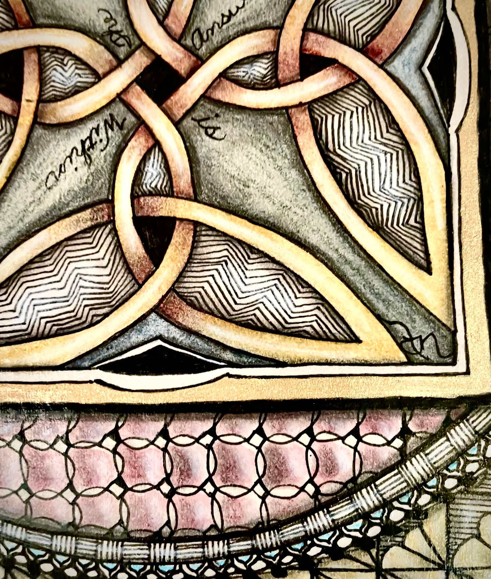 This is a mandala type of Zendoodle art with Celtic Triquetra Knots and a quote.