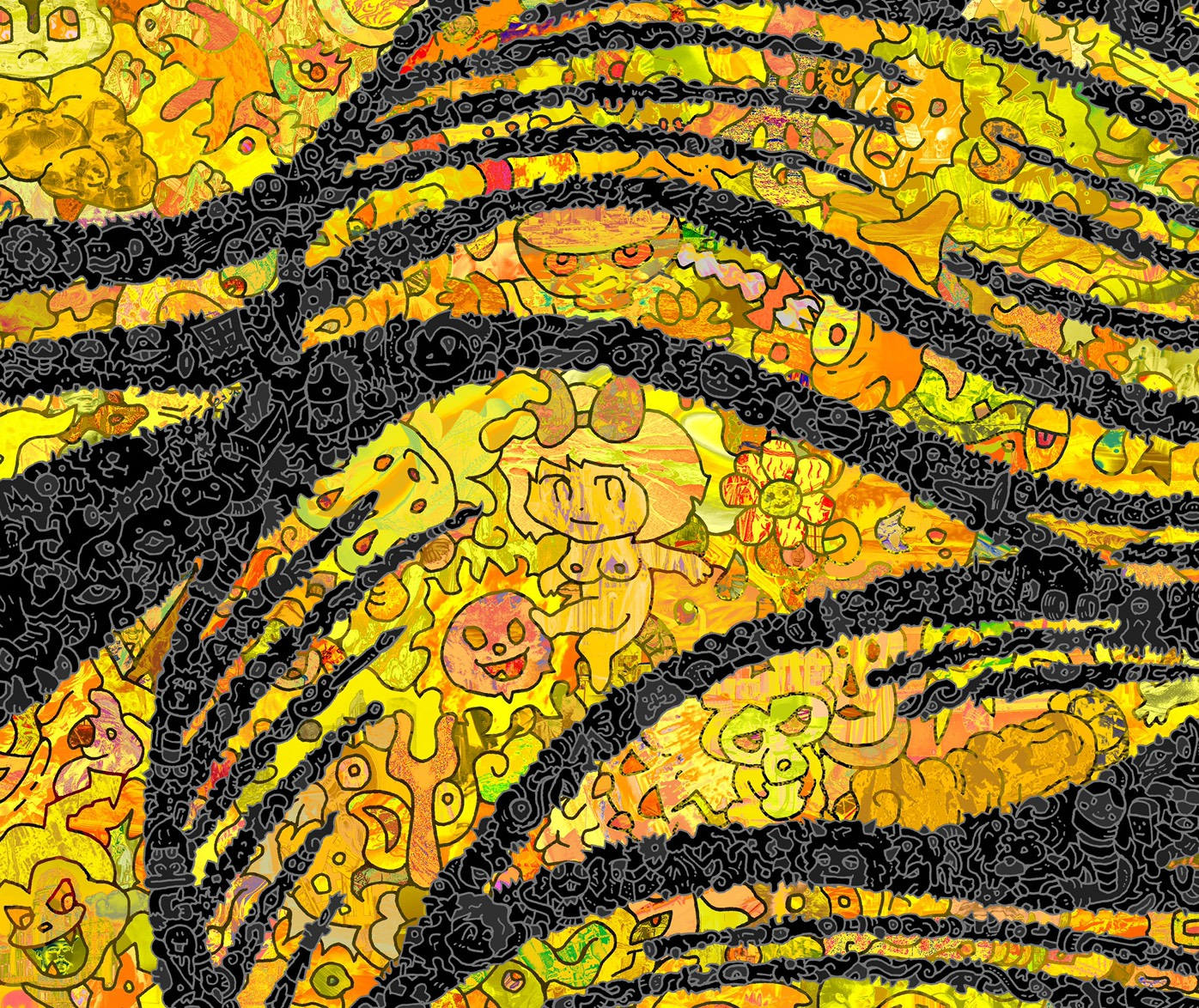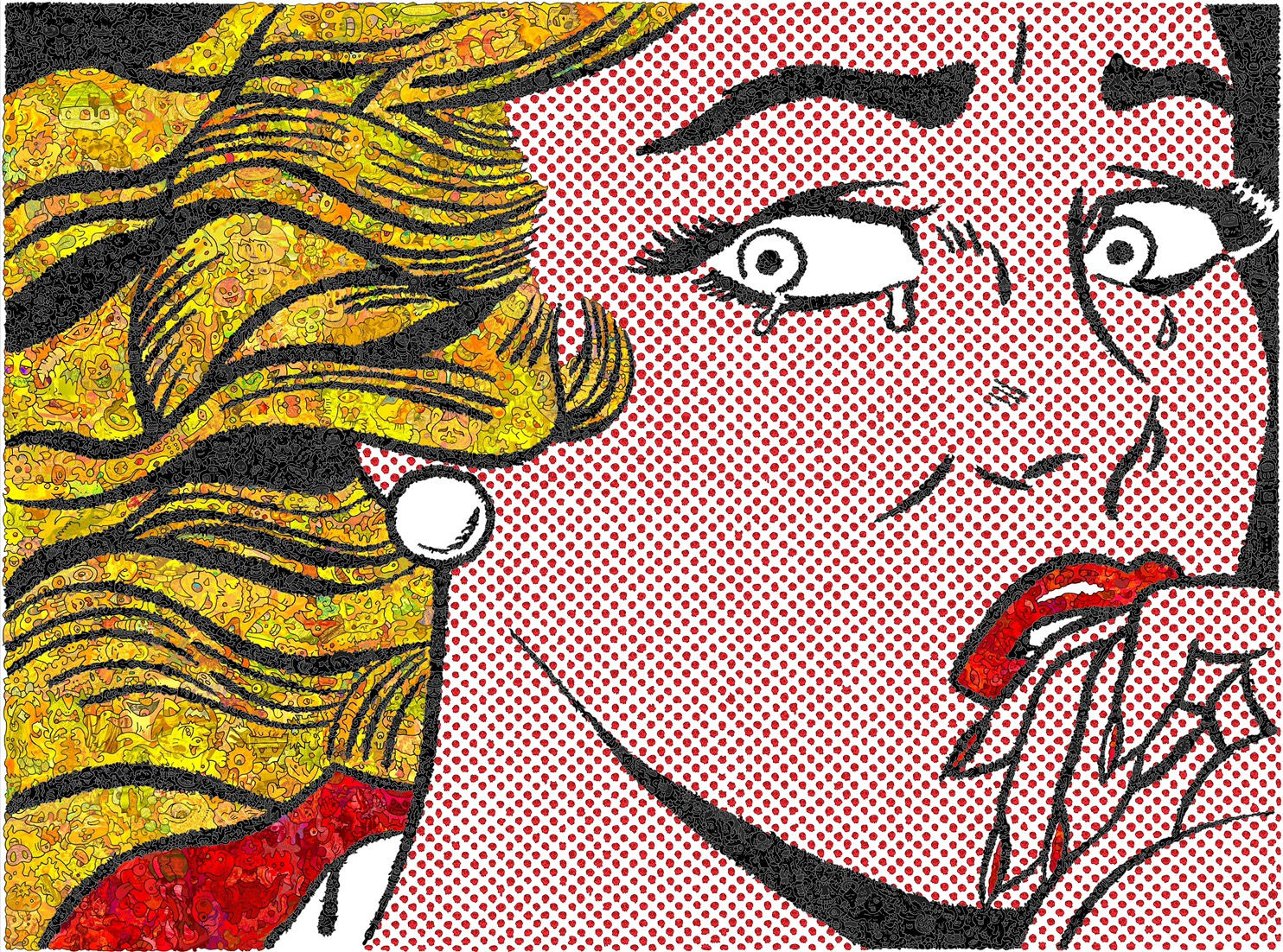 This work is the latest work of the MMNT-MR series. MMNT-MR refers to memento mori. In this series, all the dots in Lichtenstein's work are transformed into skulls. It's not a copy, it's all drawn by hand. It is not a single "death" buried in a mass-consuming society or an information society. It means that each person has various deaths. In addition, the theme of death highlights the existence and significance of "life." In addition, the color part is a collage of various life and death photographs and images on the background of the character(the color is converted). If you look closely at the color of the character, you can see various images of death. and By giving this theme to pop art, I think the "Life and Death" of theme will be emphasized more.