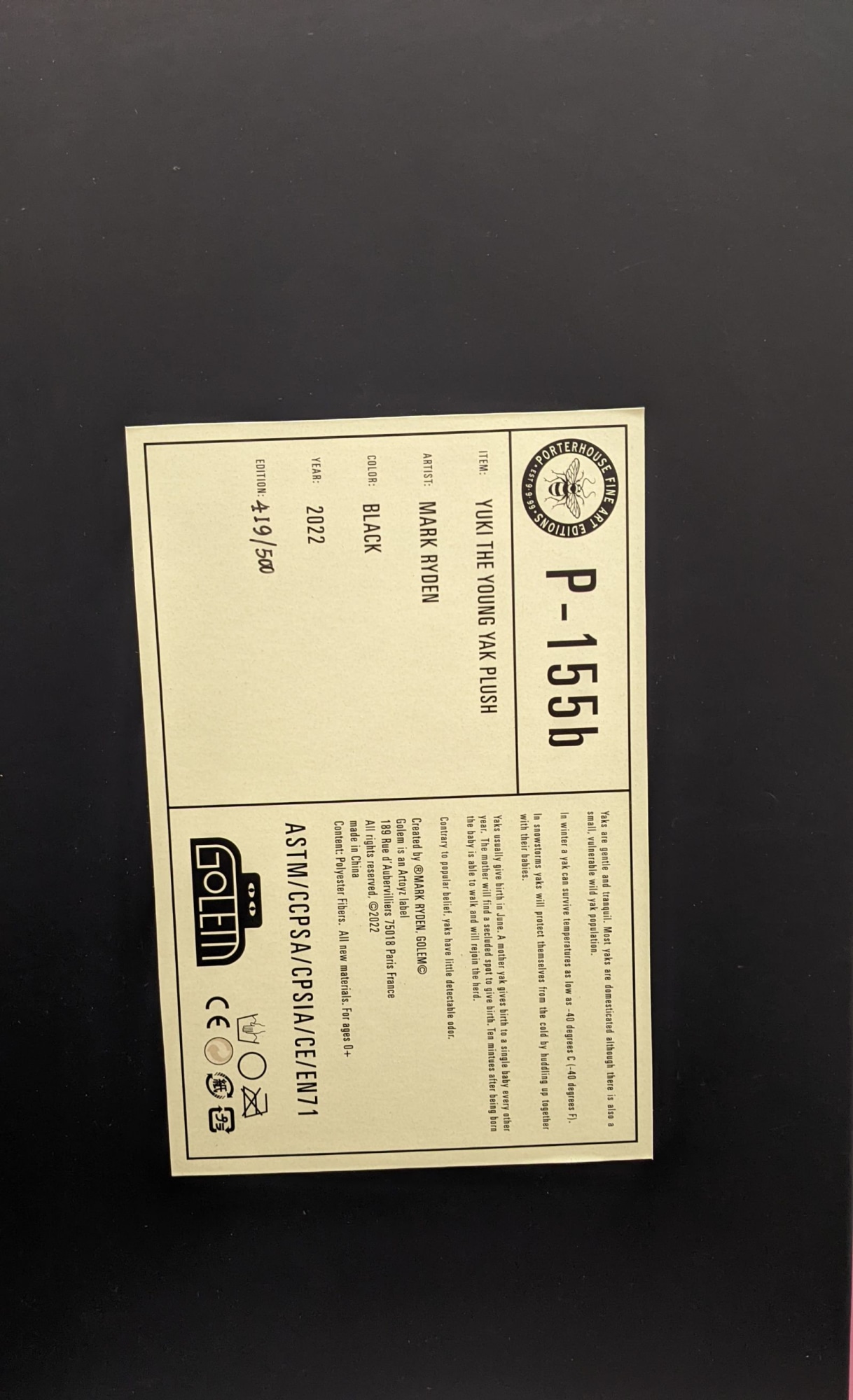 - (419/500) Yuki the Young Yak plush (black), 2022