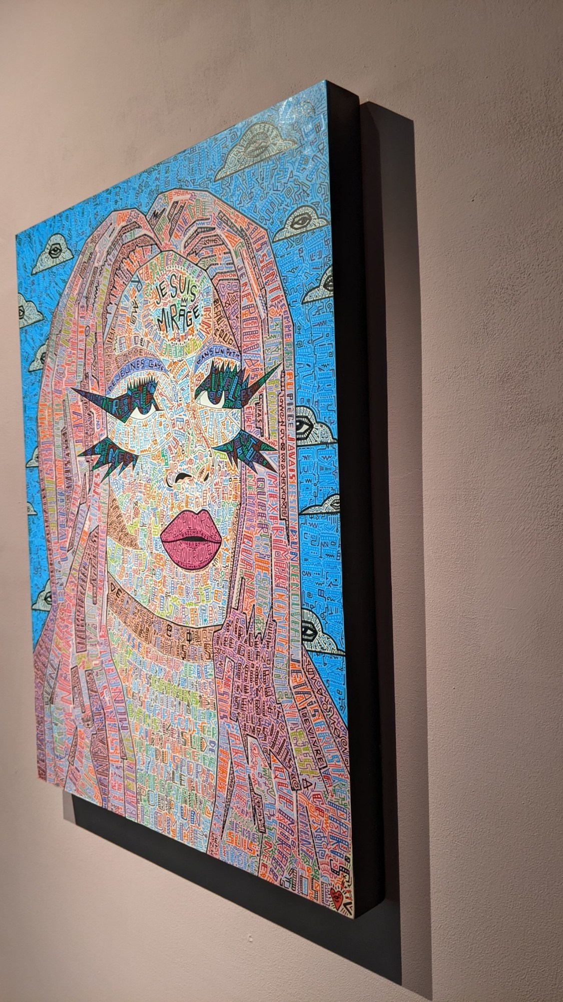 MessageThis is an artwork about Mirage, a drag queen from Paris. Mirage was born in a small village around Toulouse in Southern France. Growing up for him was a bit difficult due to the very conservative nature of the French countryside. “I was the artist in my village. I was the boy who never went outside. I was always drawing or reading. I was not comfortable with playing with other kids (especially boys) because in Southern France they were all about sports. I was more interested in music, imagination, and creativity.” Mirage says,” and I got heavily bullied because of that”. Through the darkness, Mirage found hope from their talent in the arts and from their mother, who was VERY supportive of fostering that talent. Mirage mentions “I was artistic, but I didn’t know what I wanted to do. I played piano for three years, and then trained to be a singer before high school. During high school I was in the theatre but I got a bit bored. While I liked the arts, I really loved video games more, and began to concentrate on that and graphic design”