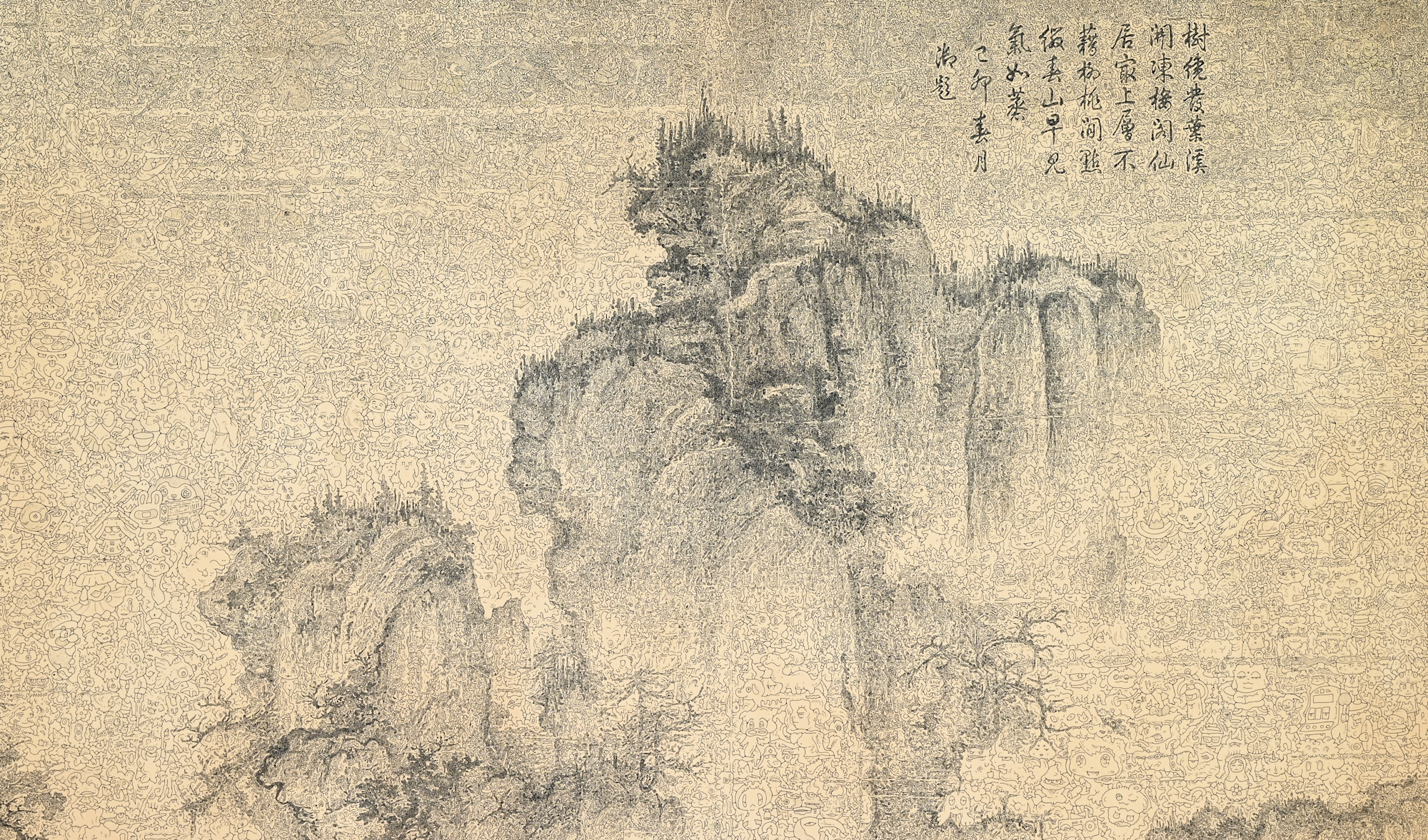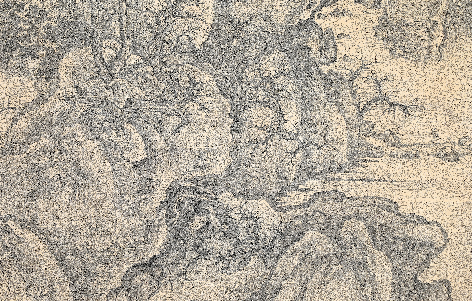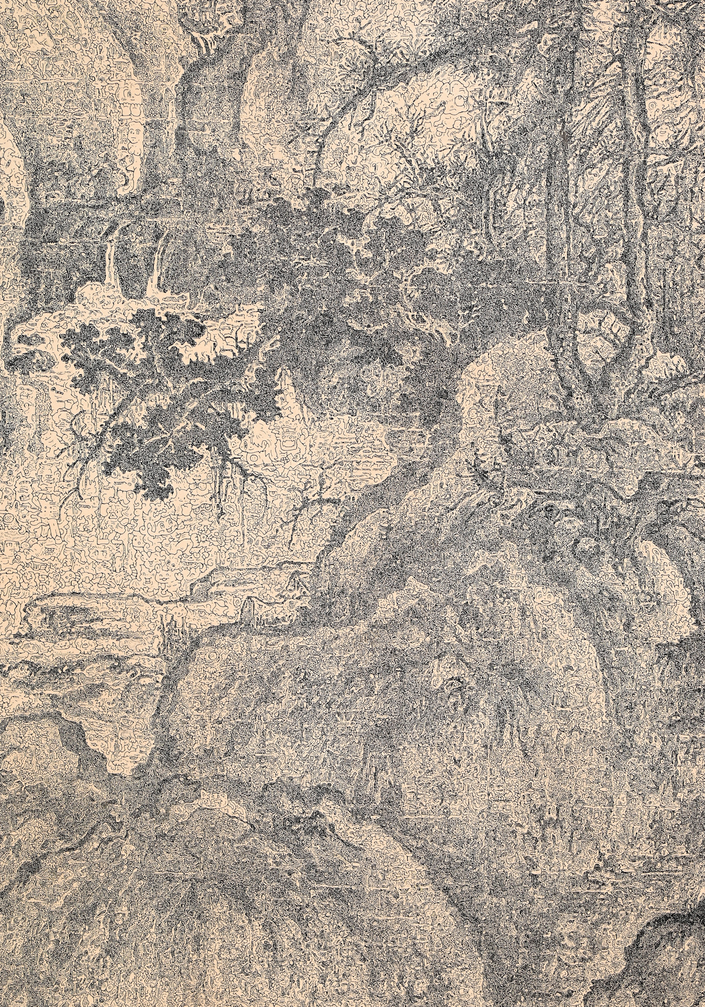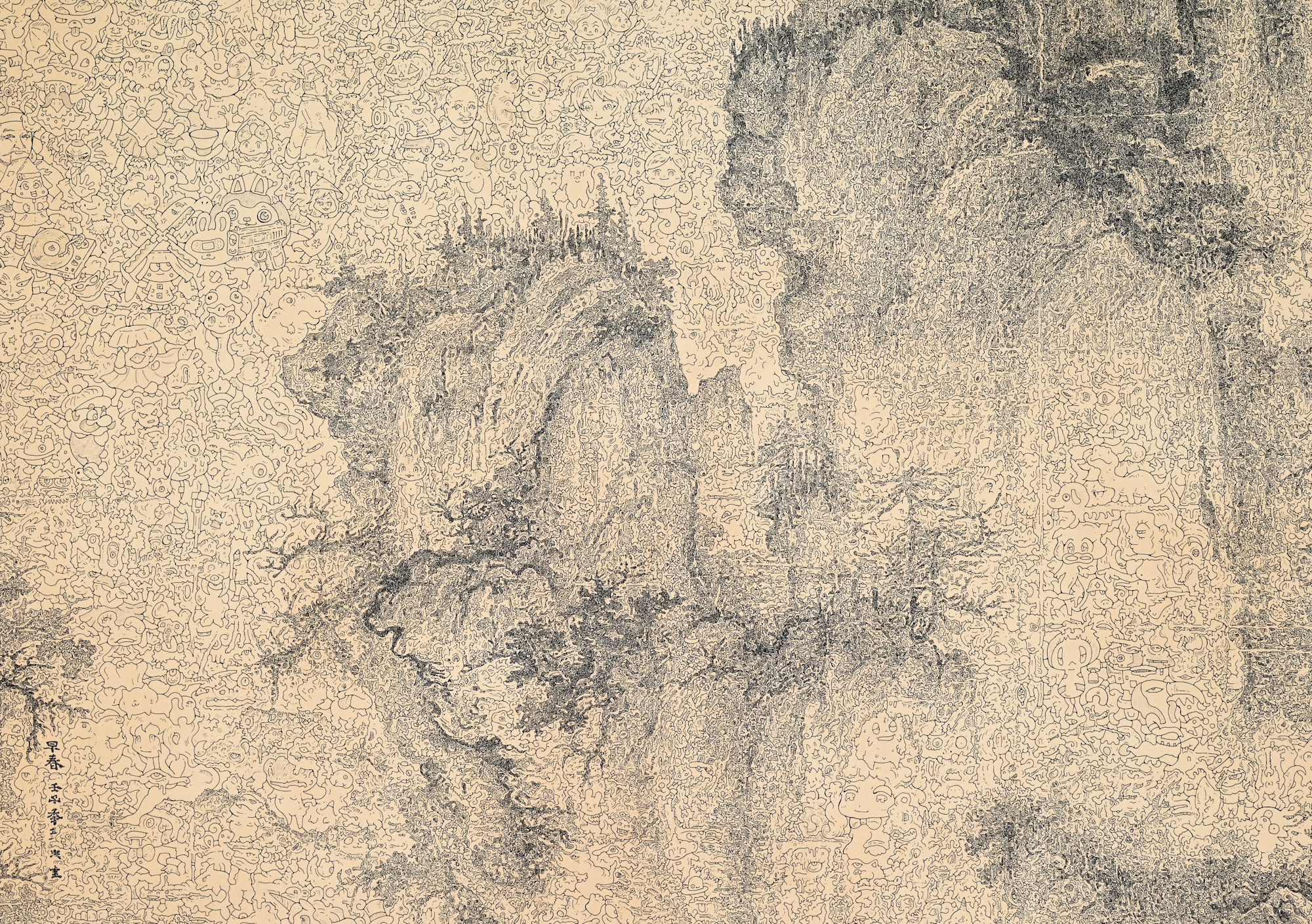 - 硬筆、紅茶和咖啡(台灣日月潭)、紙 、木板 Pen, black tea and coffee from Taiwan on classico fabriano, mounted on board