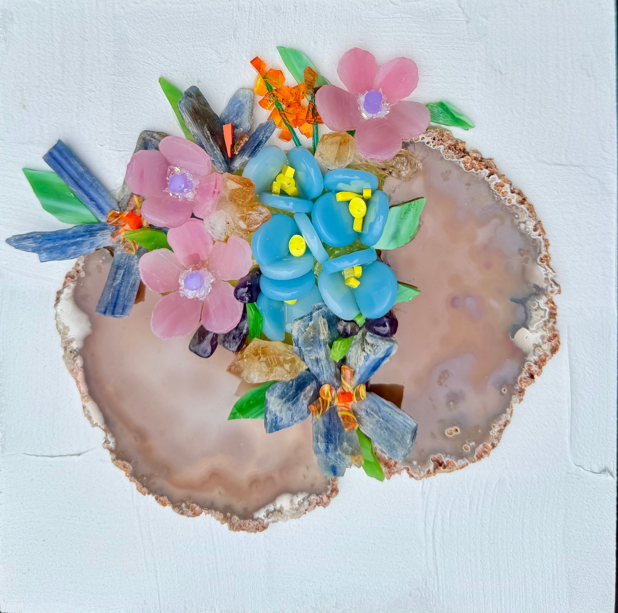 Hand cut art glass, agate, kyanite, amethyst, citrine
