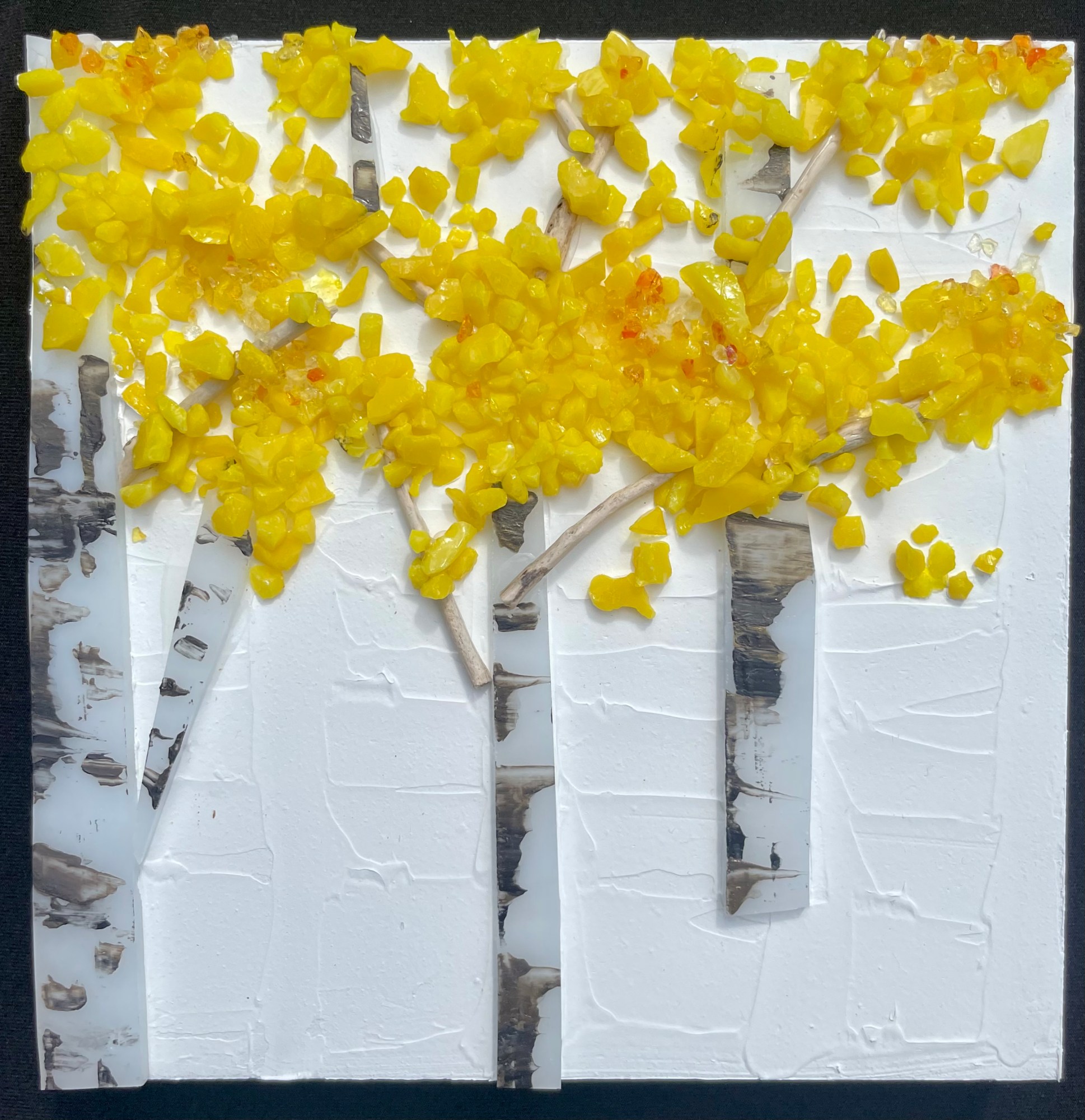 Hand cut art glass and acrylic mediums.