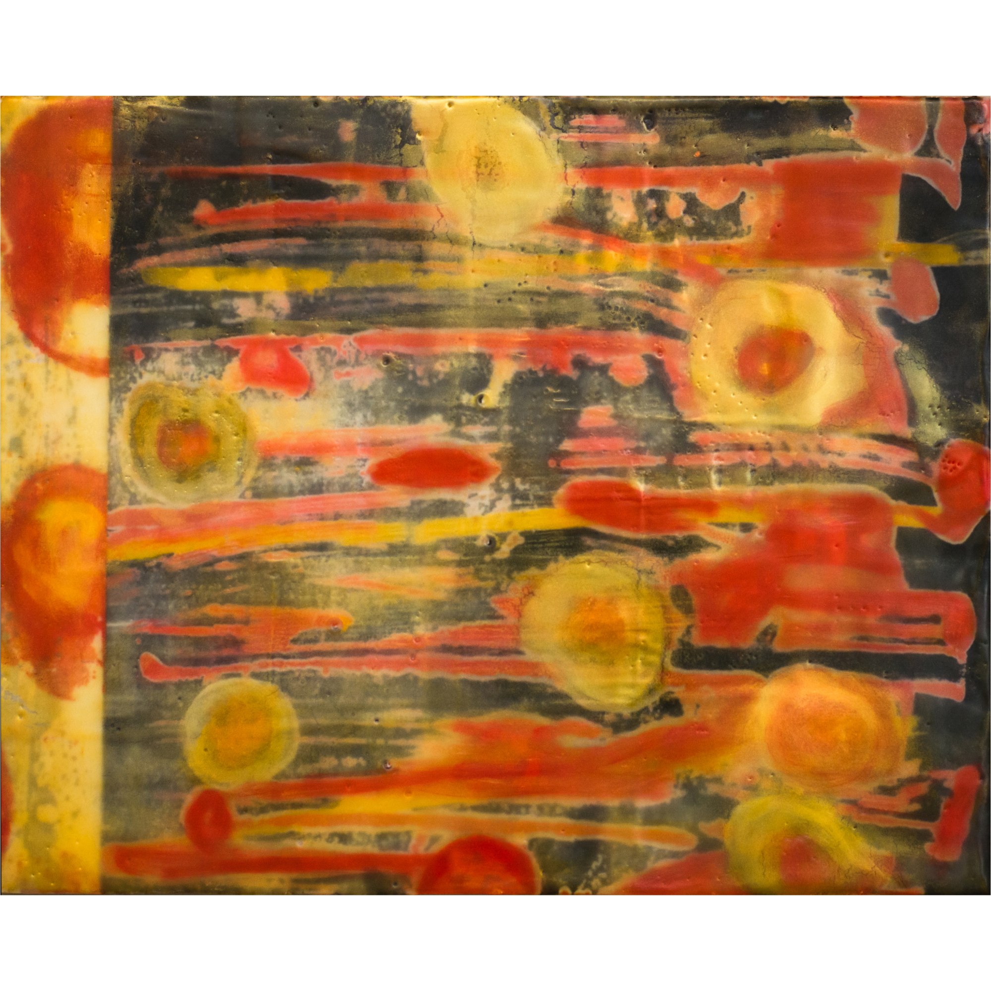 Mixed media, encaustic monotype, encaustic, shellac burn, collage, oil pigments, pan pastels