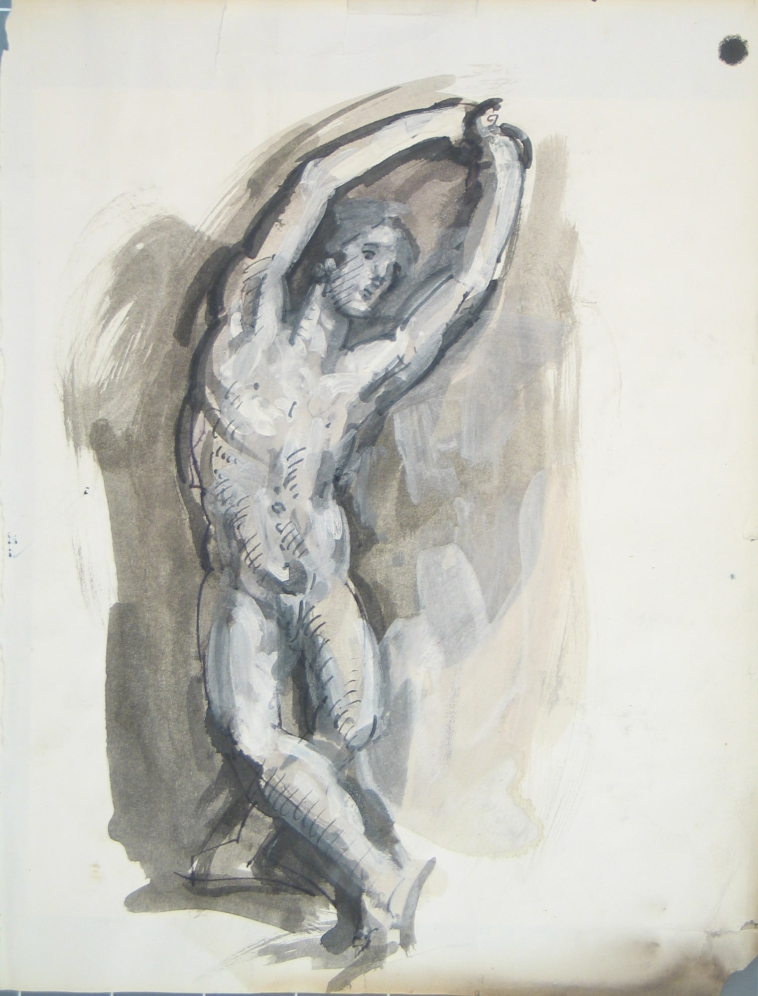 pencil on tracing paper, ink on paper, charcoal, ink wash