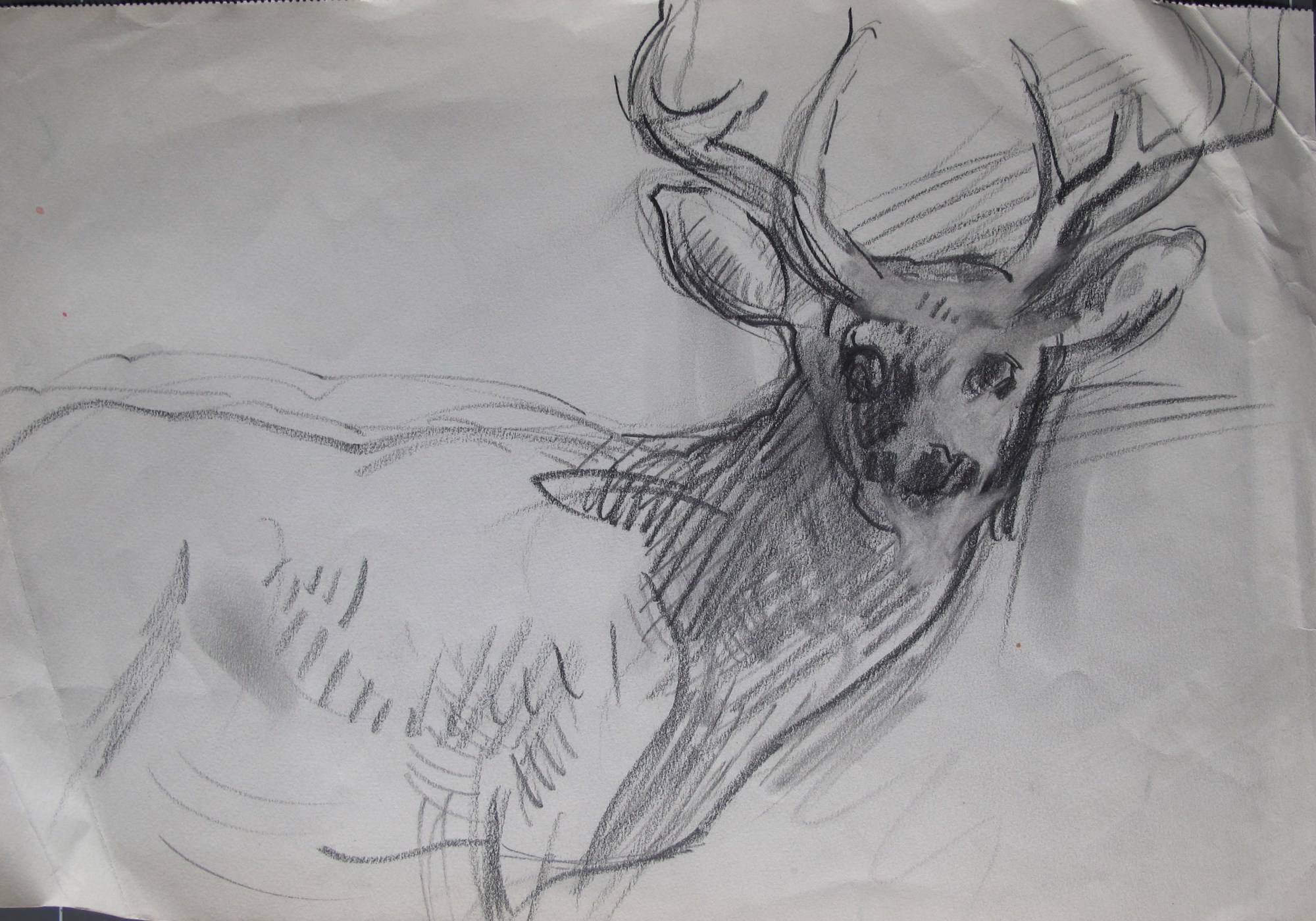 • Portfolio #2091, Drawings and collages, pencil and ink and wash, Actaeon, Atalanta [1980s?], 1985
