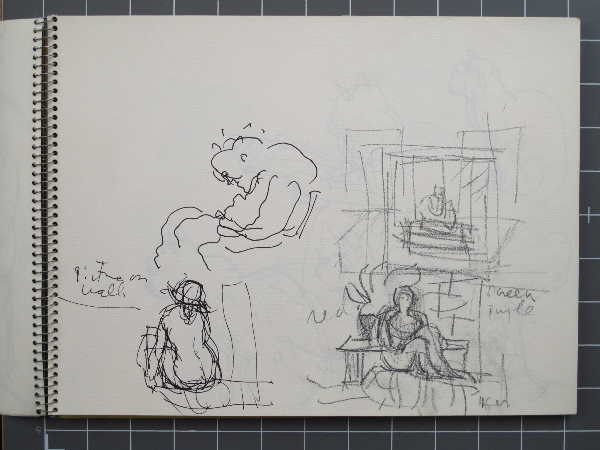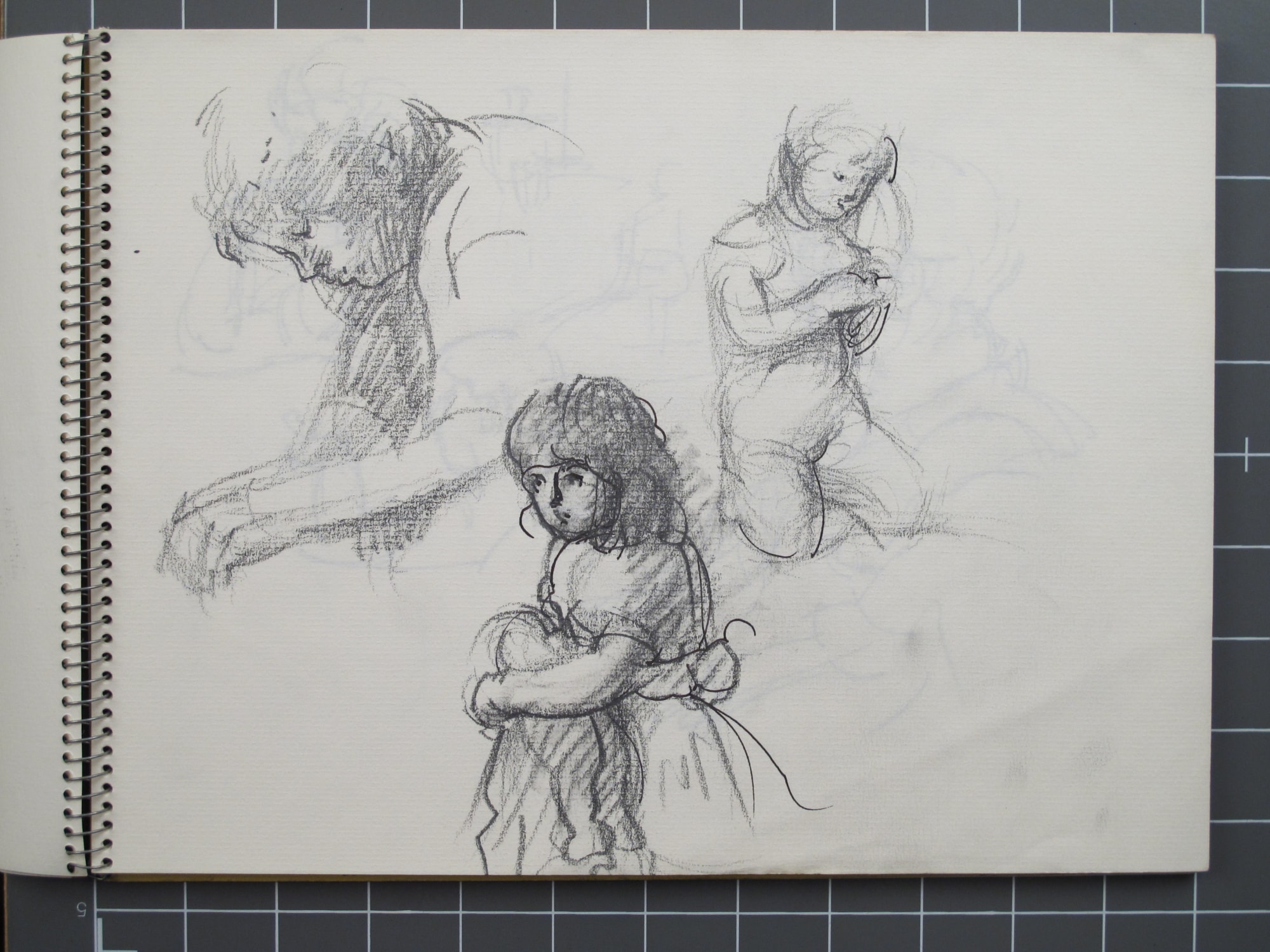 • Sketchbook #1977 pencil and ink figures sketches, 9x12