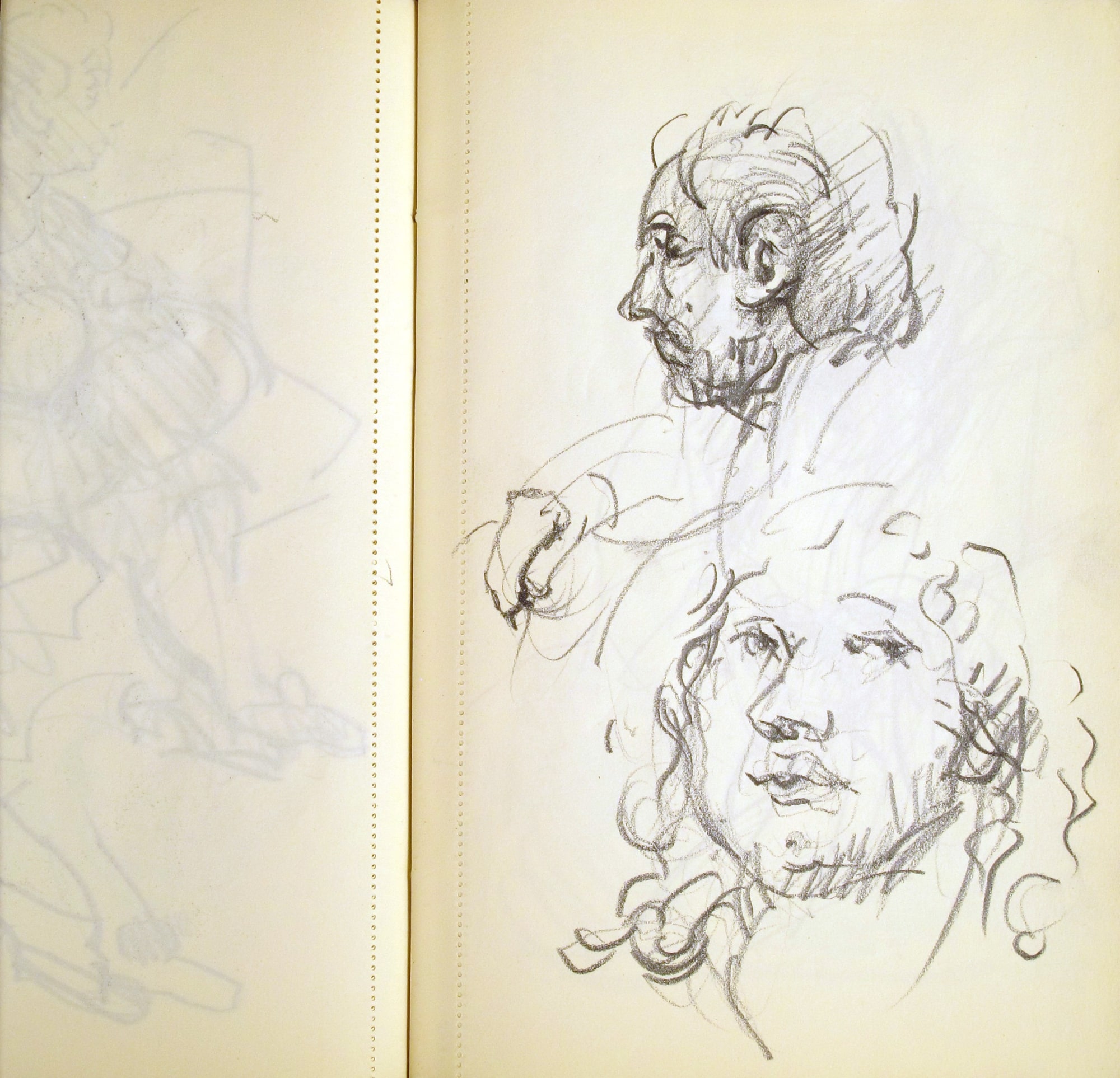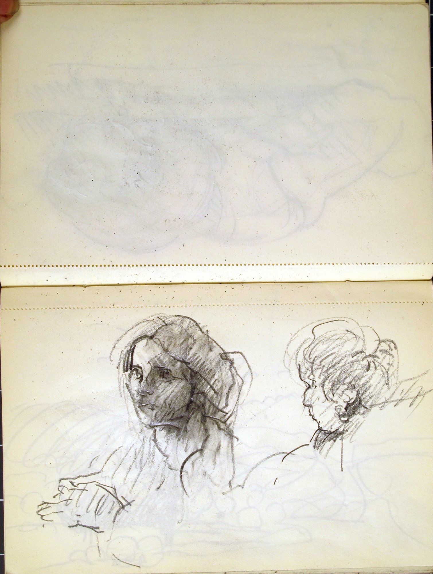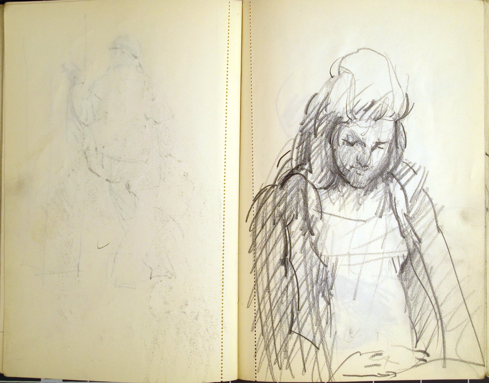 • Sketchbook #2002 pencil sketches [1973-1974] commuters, Christmas angels