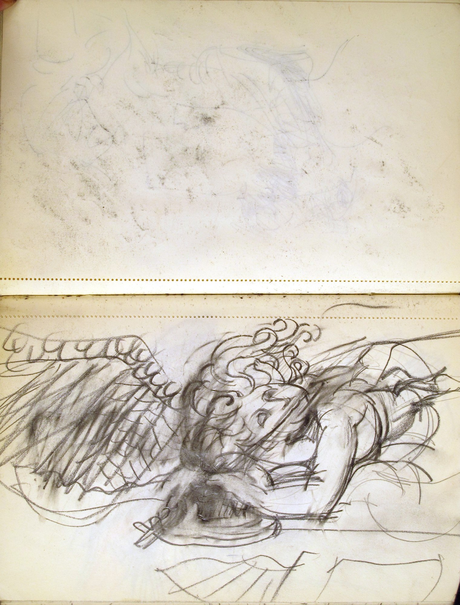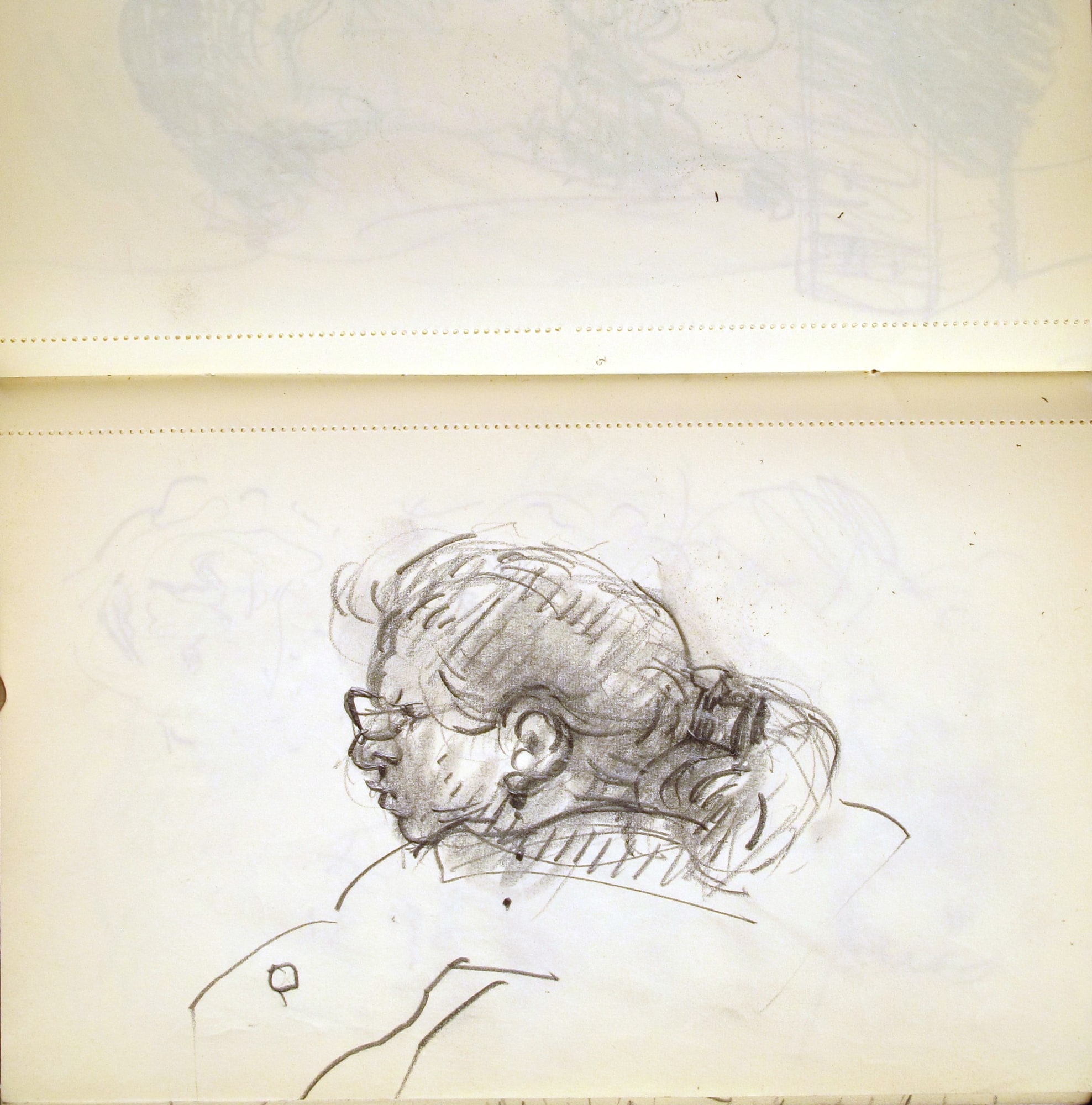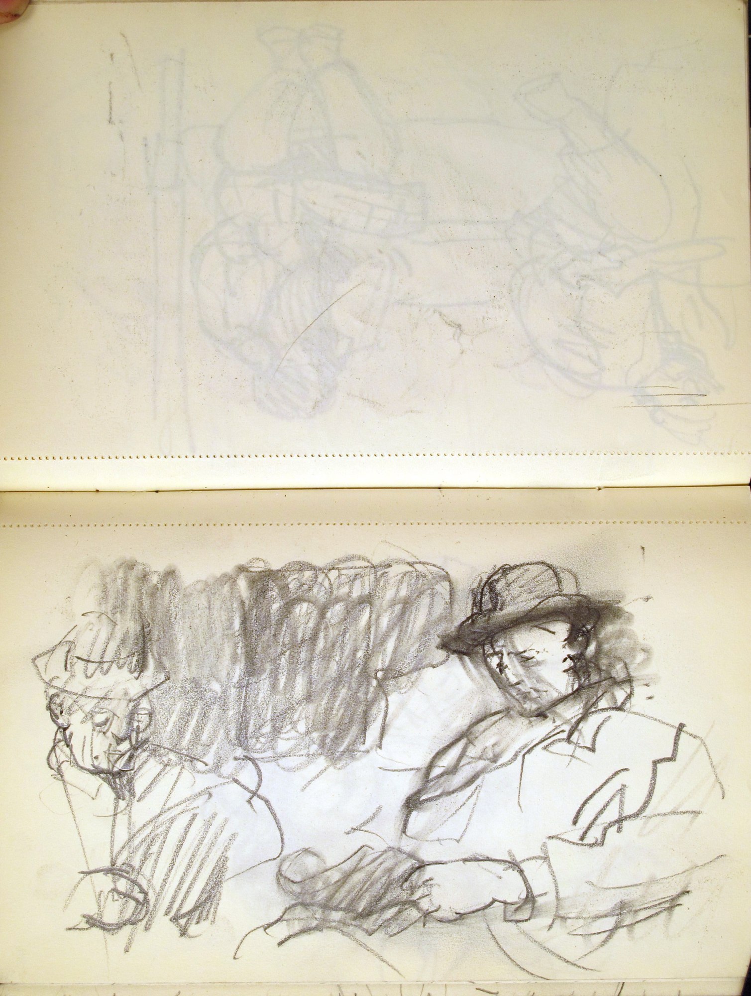 • Sketchbook #2002 pencil sketches [1973-1974] commuters, Christmas angels