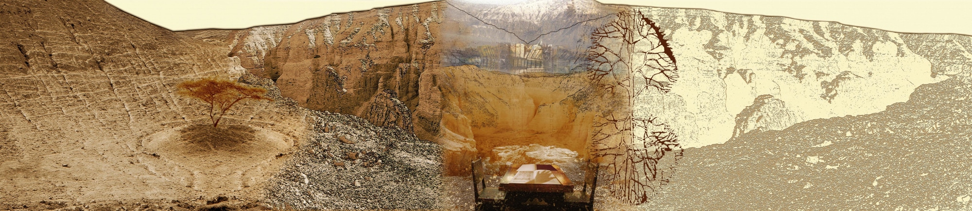 An Isaac Newton manuscript extends in a book on an 'escritoire' at the heart of a photograph depicting the Rosh Zohar ridge in the Judean Desert—a page containing text and a sketch of the structure and dimensions of the First Temple, Solomon's Temple. Newton, a forerunner of modern science, read and deciphered nature as one reads the Holy Scriptures. Likewise, he sought the encrypted message waiting to be decoded in the natural sciences as well as in theological writings. This type of search is manifested in the photograph by way of analogy through the scheme of two vertical trees which continue the contour of the horizon, simulating the lobes of the brain. Sticking the artist's hand (via the image of the shadow) into "the infinite outside" is an attempt to grasp and unravel the enigma. The primordial presence of the past and of external worlds embracing the "scene" of an inner world, outline the "grand unified" picture of everything.