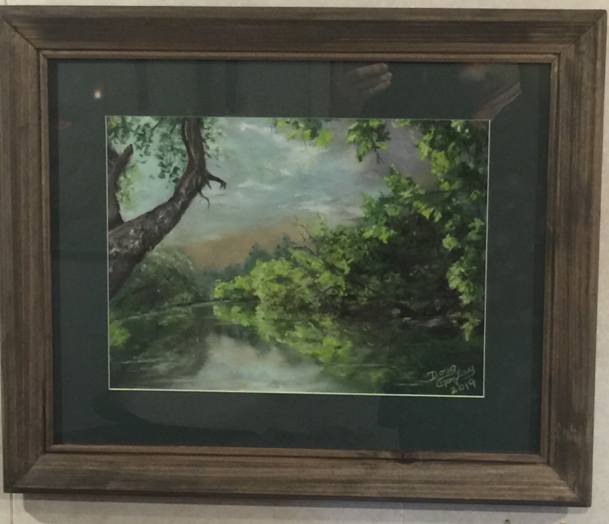 Waterway scene on a beautiful summer's afternoon. Reflections of lush greenery and soaring beautiful sky in the placid water way.