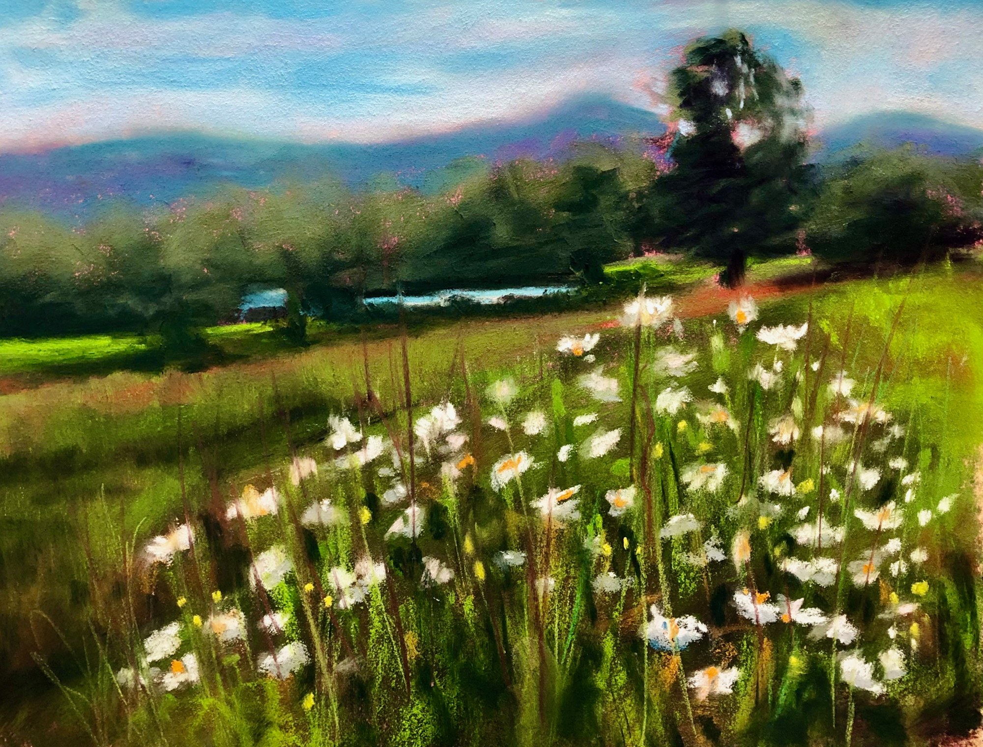 Soft pastels on Pastelmat. Matted to 11x14 to fit a standard frame.