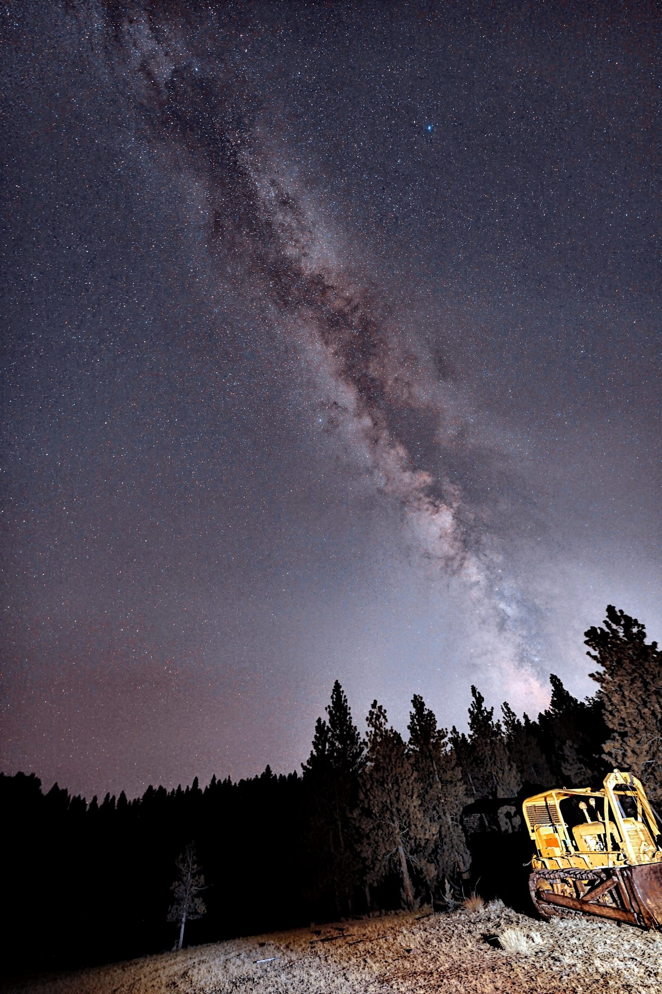 Captured on a remote hilltop near Prineville, Oregon, this striking image blends the rugged legacy of an old Caterpillar tractor with the timeless beauty of the Milky Way arching overhead. It’s a powerful contrast between earthbound grit and cosmic wonder. It is a reminder of how far we’ve come and how much still lies beyond.