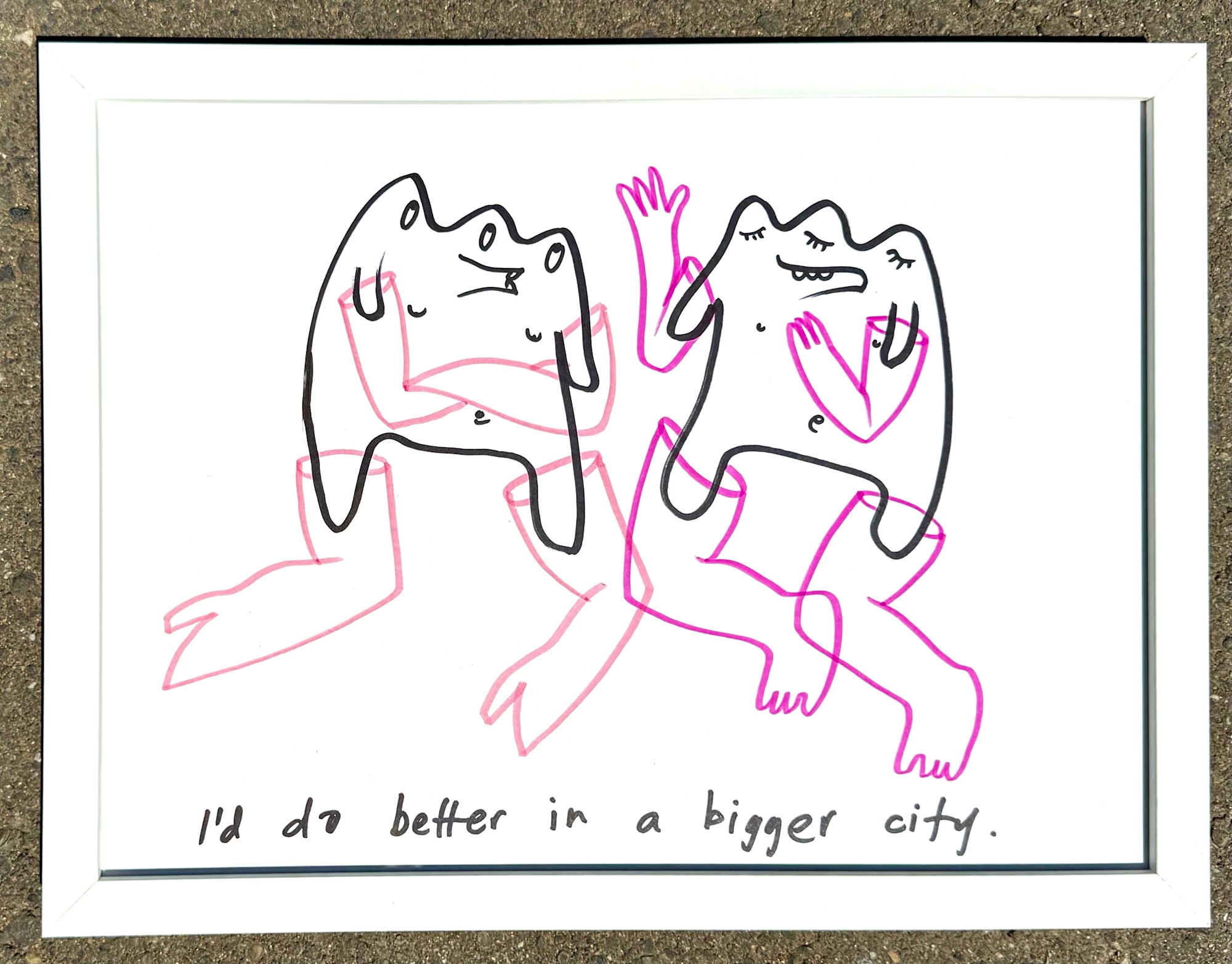 "Trying to be human" is a collection that features life forms attempting to blend in with human society by trying on appendages - arms, legs, and genitals. Despite their understanding of human anatomy, they often (mis)assemble mix and match body parts. The conversations and relationships they attempt to have using their newfound language skills are at once arbitrary, guileless, and familiar.