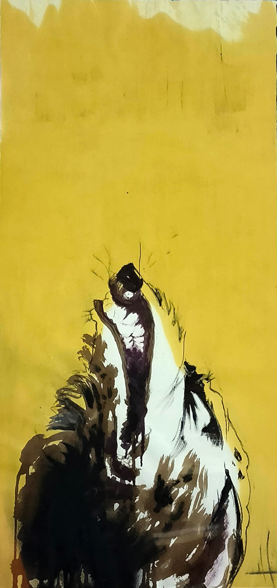 Charcoal, walnut, spray and teak oil on watercolor paper
