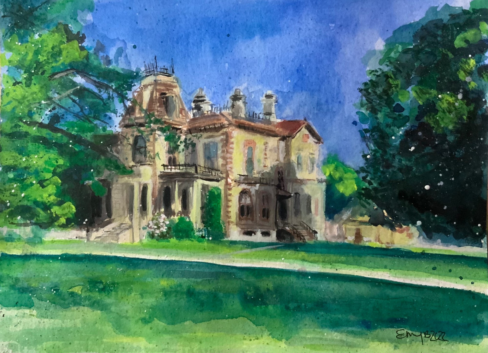 Watercolor painting of David Davis Mansion in Bloomington, Illinois.
