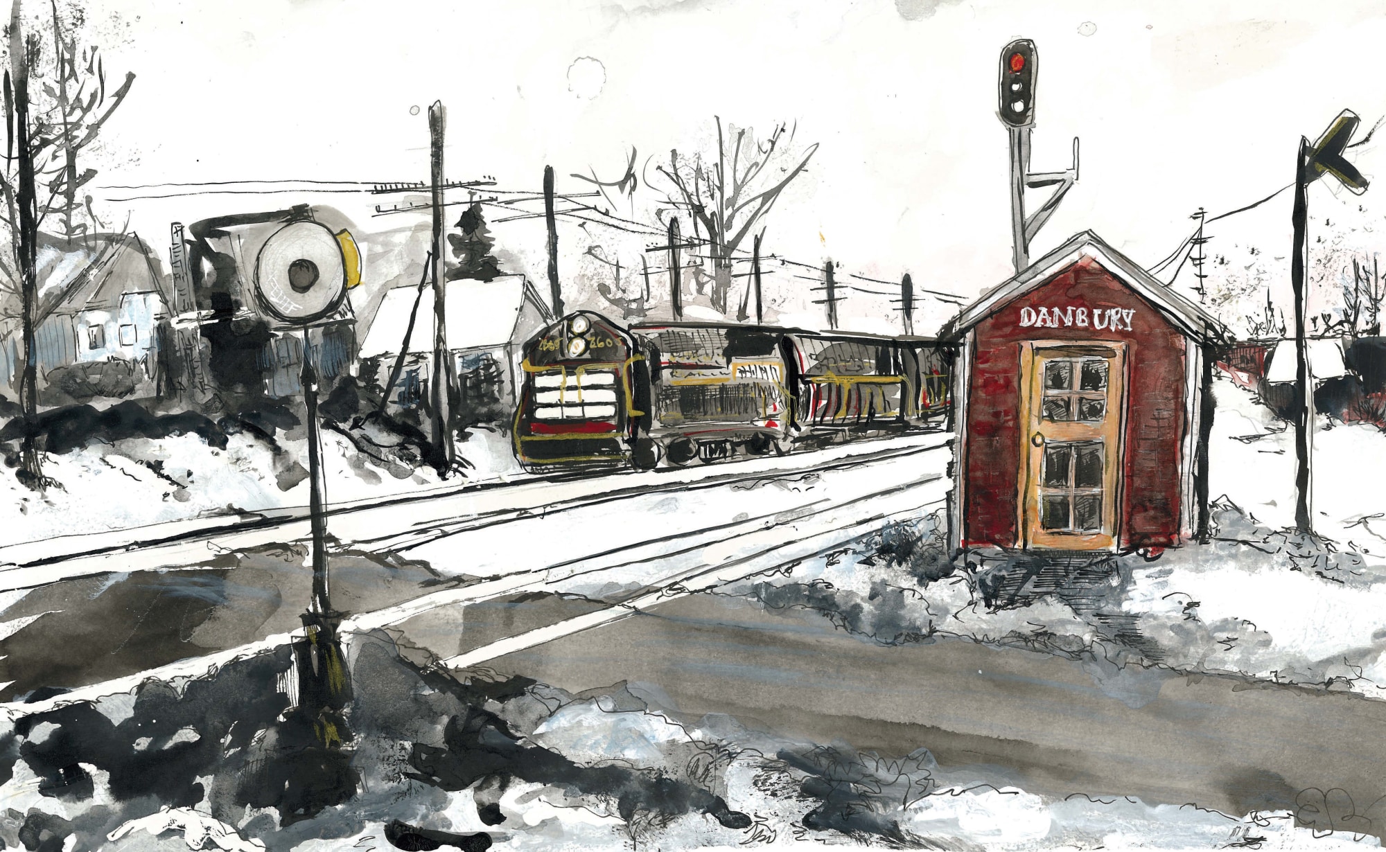 Painting from a historic picture of Danbury, Connecticut of train tracks in Danbury Illinois. This painting has been sold. Please contact me if you would like to order prints.